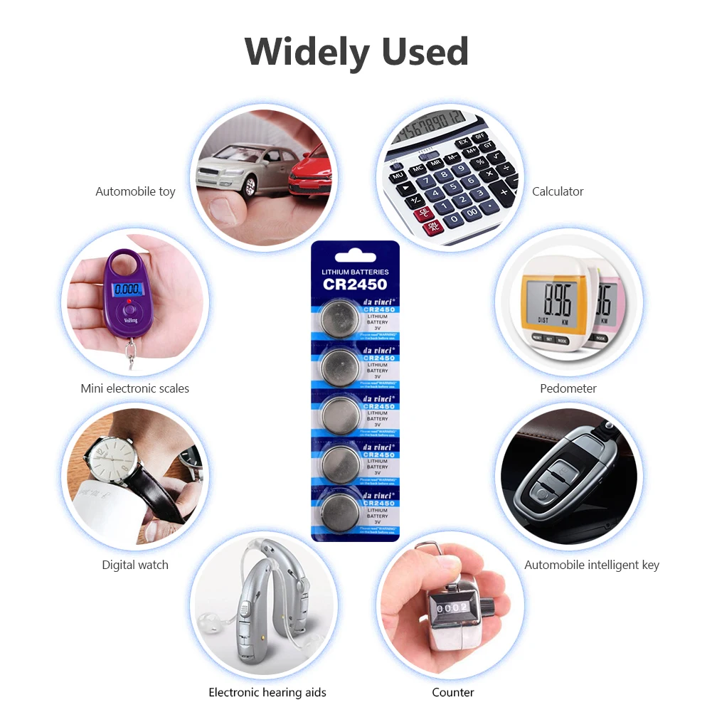 Может использоваться с электрическимИгрушка, калькулятор, лазерная указка,Материнская плата компьютера, Электронный журнал, электронные весы, кардиостимулятор, электронный слуховой аппарат, счетчикЧасы, часы, игра, цифровая камера, видеокамера, КПК, пульт дистанционного управления, электронный инструмент, mp3-плеер, цифровой диктофон, измеритель уровня глюкозы в крови, измеритель уровня холестерина, светодиодный светильник и другие электронные приборы.