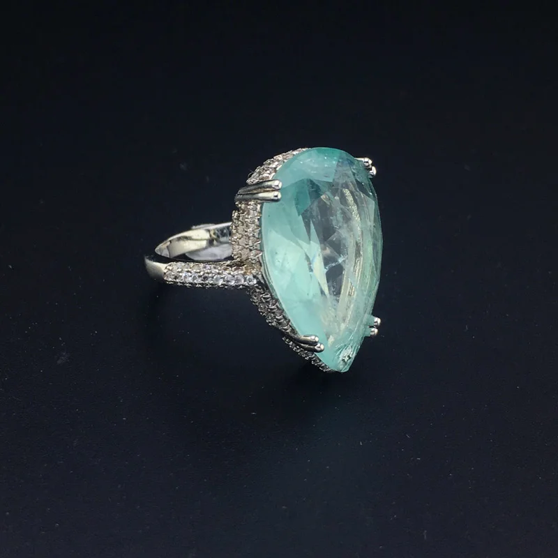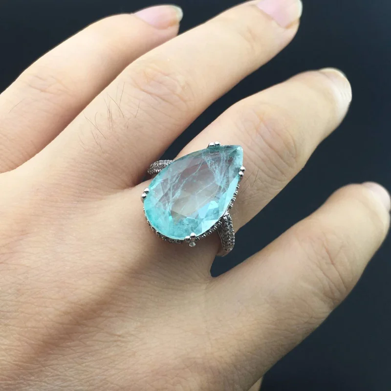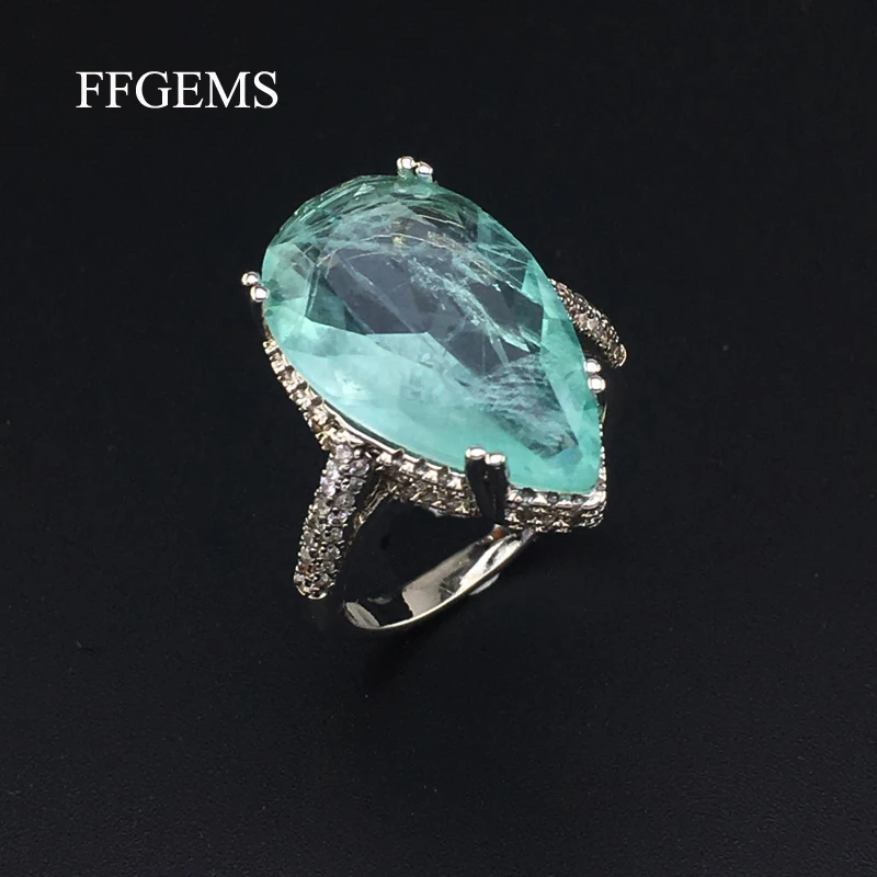 FFGems создан Параиба Турмалин Драгоценный Камень Груша 12*20 мм Свадебные обручальные алмазы большие кольца подарок ювелирные украшения для женщин и девушек Материал: медные кольца Центральный камень: созданный драгоценный камень Размер драгоценного камня: груша 12*20 мм Вес серебра: около 5,2 г