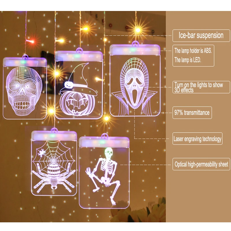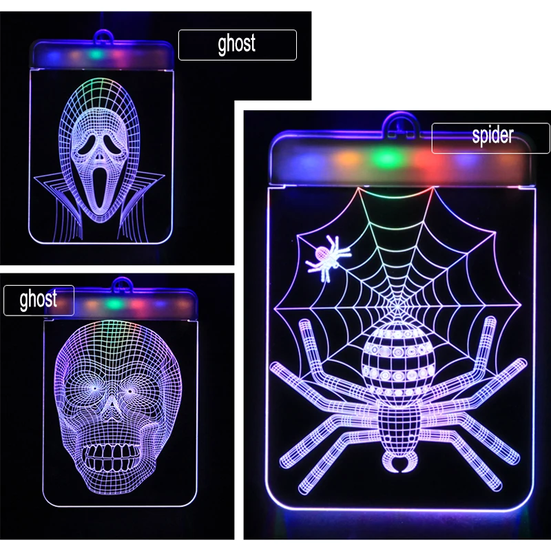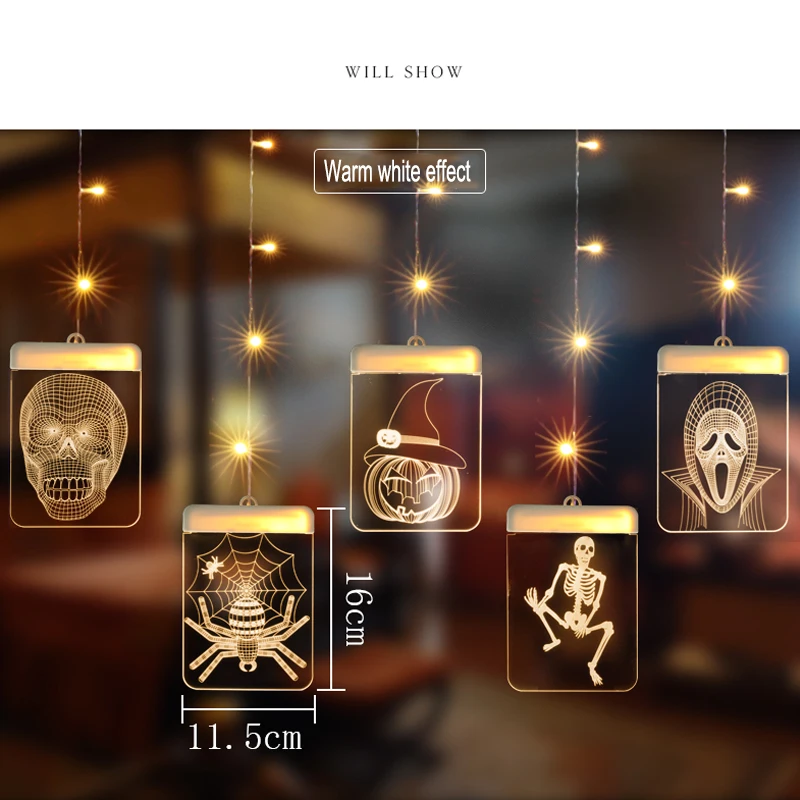 Название продукта: 3D лампы для Хэллоуина, праздничные ночные светильники Материалы: АБС-пластик Напряжение: 5 В Цвета: 1, теплый светильник 2, разноцветный светильник Питание: USB провод Один размер: 11,5х16 см