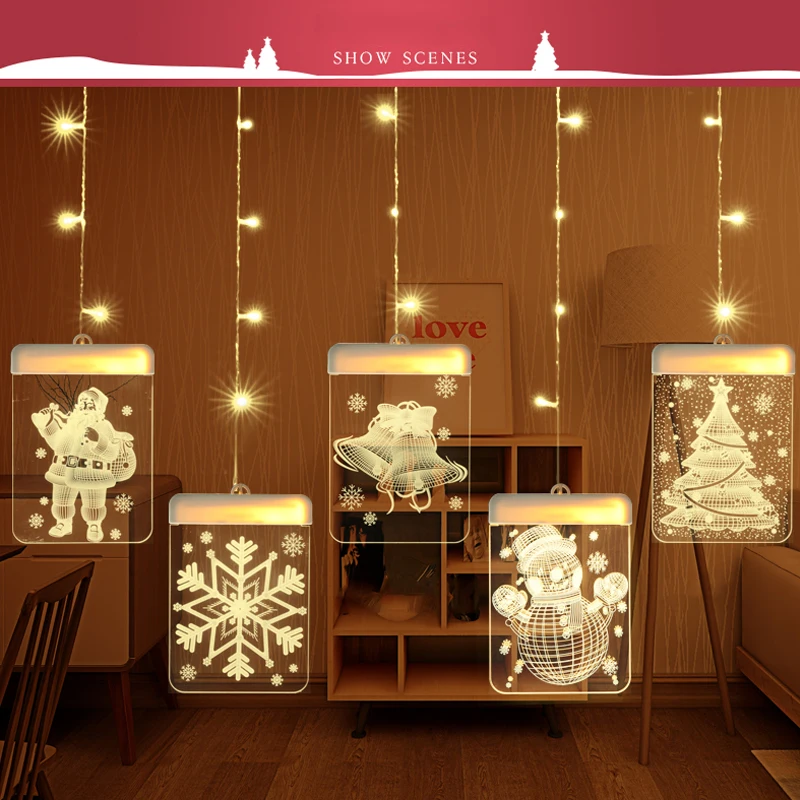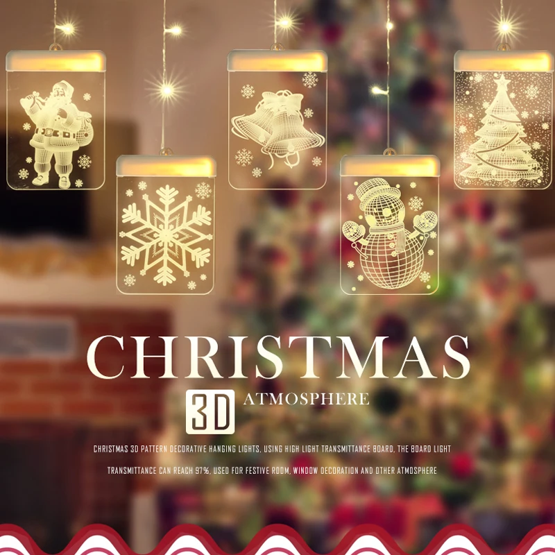 Технические характеристики: Название продукта: 3D светодиодный светильник на Рождество, праздничные огни, ночные светильники Материалы: АБС-пластик Напряжение: 5V Цвета: 1, теплый светильник 2, разноцветный светильник Мощность: USB провод Один Размеры: 11.5X16CM