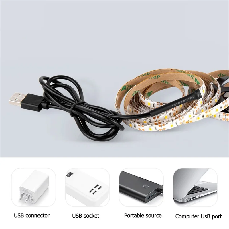 Из водонепроницаемого материала Напряжение: 5 В USB соединение Цветовая температура: теплый светильник/белый светильник Размер: 1 м/2 м/3 м/4 м/5 м