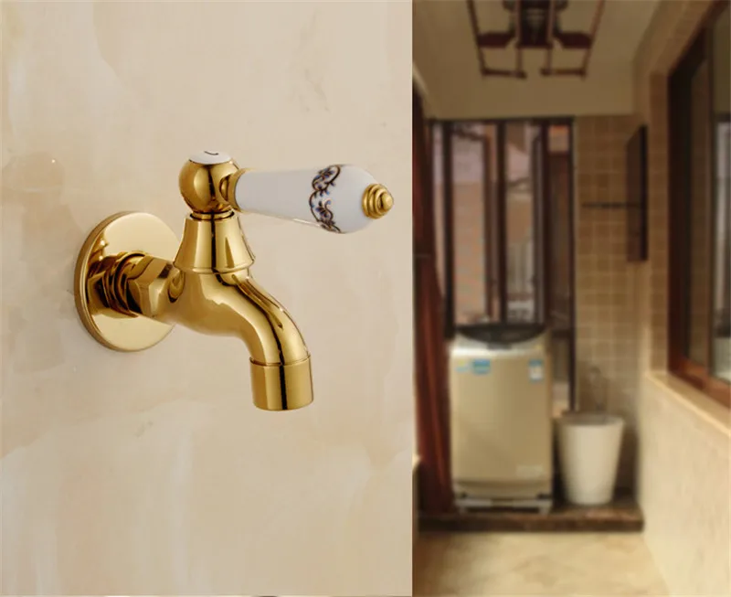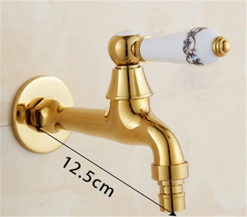 Новый позолоченный садовый кран для ванной комнаты, настенный кран для стиральной машины, кран для ванны, кран для холодной воды, туалет, бассейн, хромированный