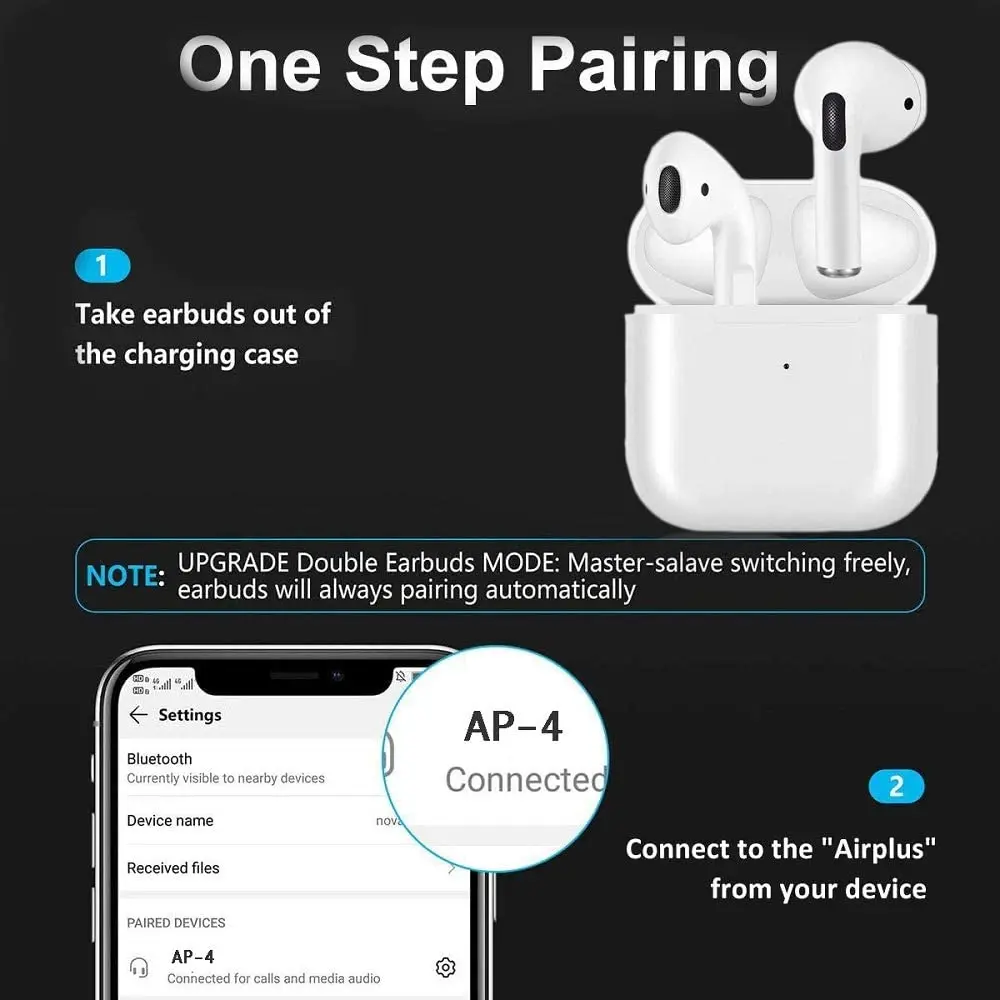 Чехол для мобильного телефона 300 мАч: зарядный чехол имеет 4 зарядных контакта, что делает зарядку гарнитуры быстрее и безопаснее, а также позволяет наслаждаться 9 часами без зарядки кабеля для передачи данных.