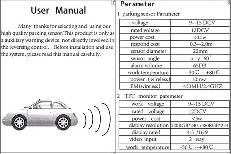 Может быть соединен с камерой, камерой заднего вида и отображаться вместе, расстояние будет отображаться на мониторе, а звуковой сигнал будет напоминать вам расстояние в разном градусе