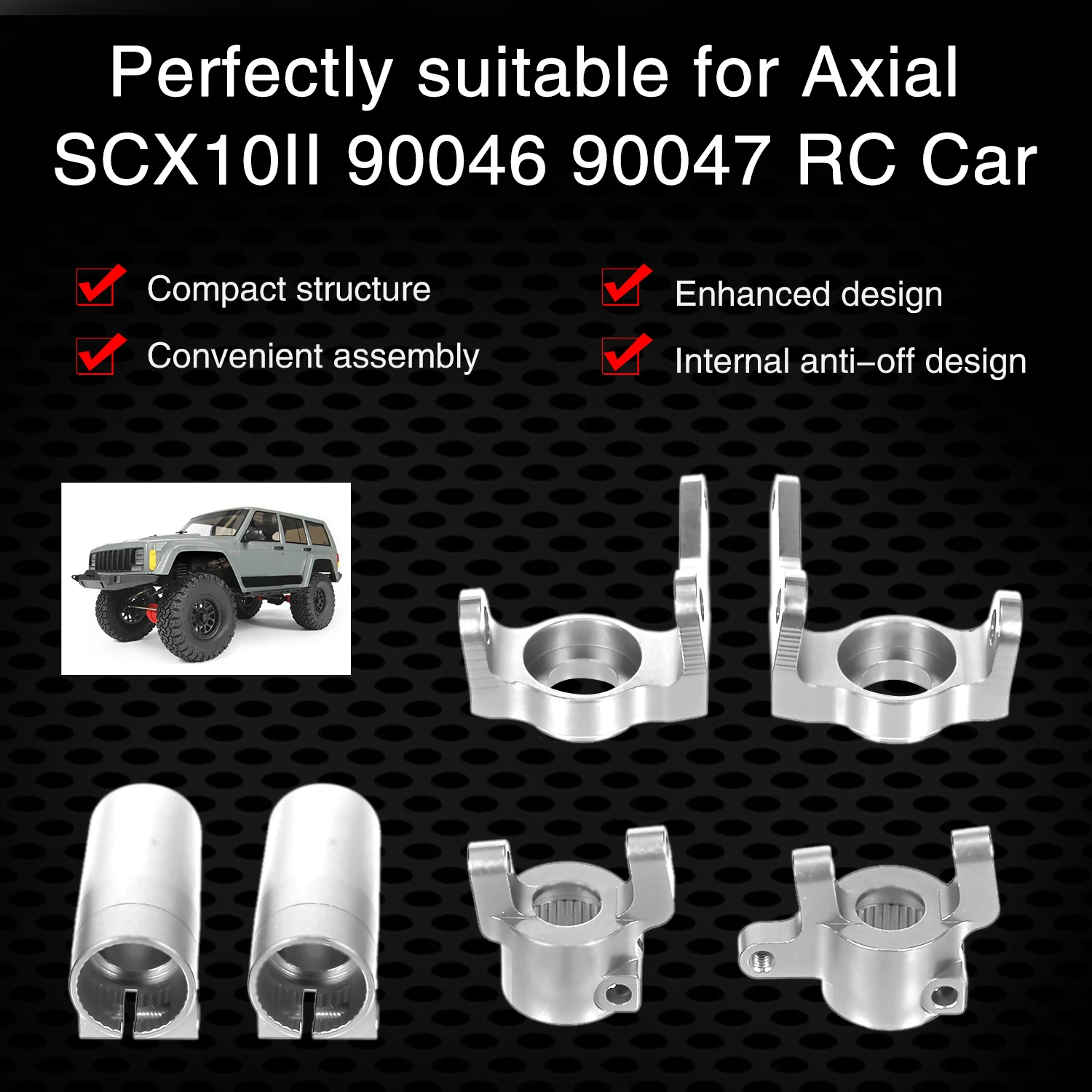 Они подходят для осевого автомобиля SCX10II 90047 RC. Они способны эффективно улучшить стабильность рулевого управления, что обеспечивает отличную производительность, предотвращая деформацию кузова транспортного средства.