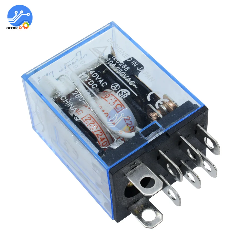Электромагнитное реле переменного тока 220 В постоянного тока 12 В 24 В 10A LY2NJ катушка DPDT реле питания розетка DPDT 8 Pin HH62P с держателем цоколя