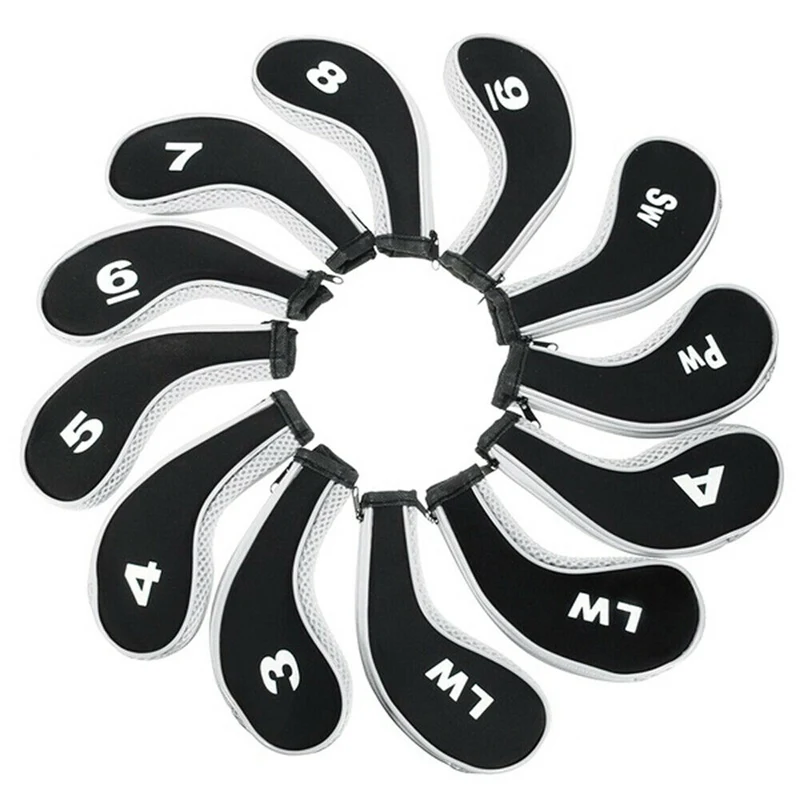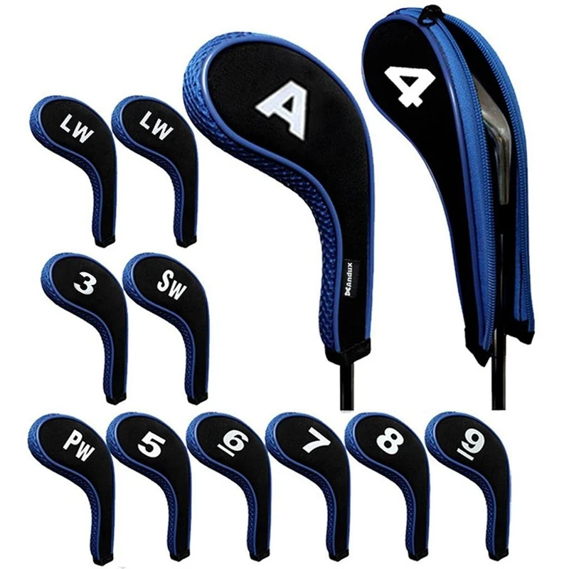 Набор из 12 чехлов для головы гольф-клуба с цифрами для идентификации.
