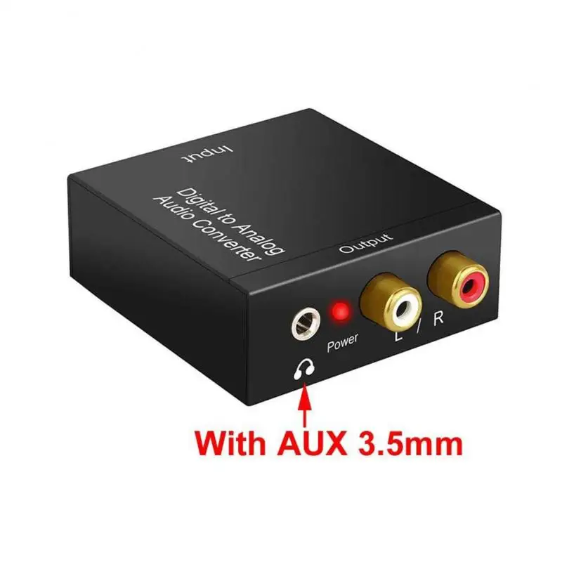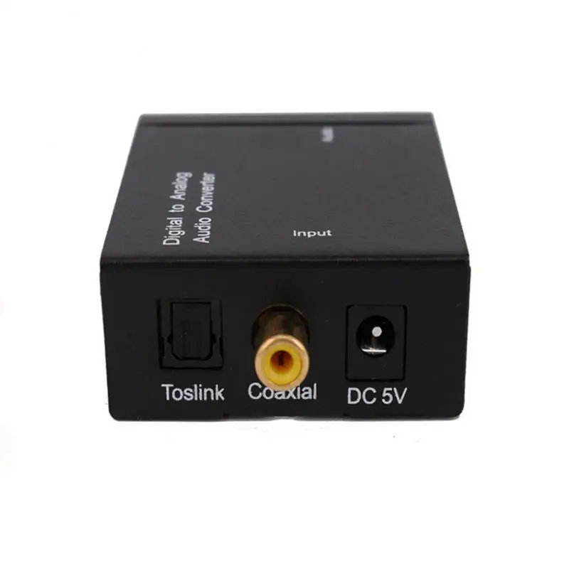 Он преобразует коаксиальные или Toslink цифровые аудиосигналы в аналоговый аудио L/R и доступен для подключения к внешнему устройству, например, усилителю через стандартные разъемы в стиле RCA.