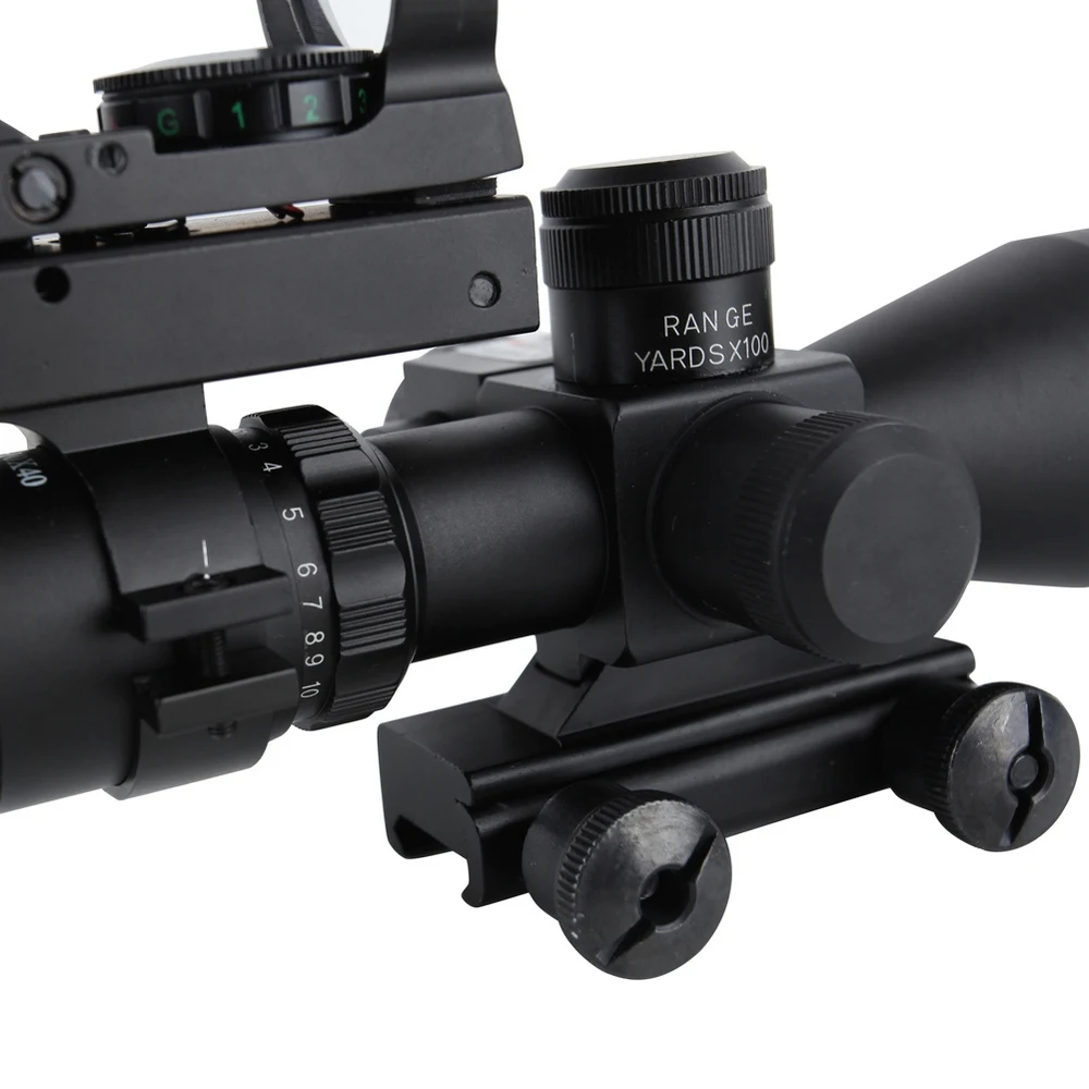 1x2,5-10x40 прицел с подсветкой с колпачками для линз красного лазера2 xАккумуляторы CR2032
