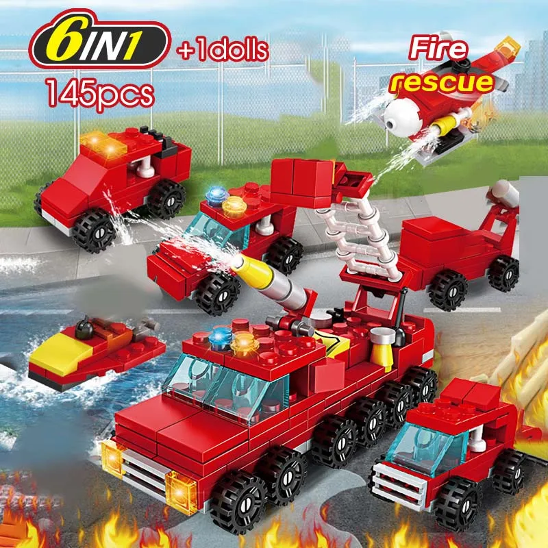 4/6в1 строительные блоки городской инженерный пожарный медицинский спасательный спецназ полицейский военный автомобиль современный уличный вид Принцесса замок игрушки