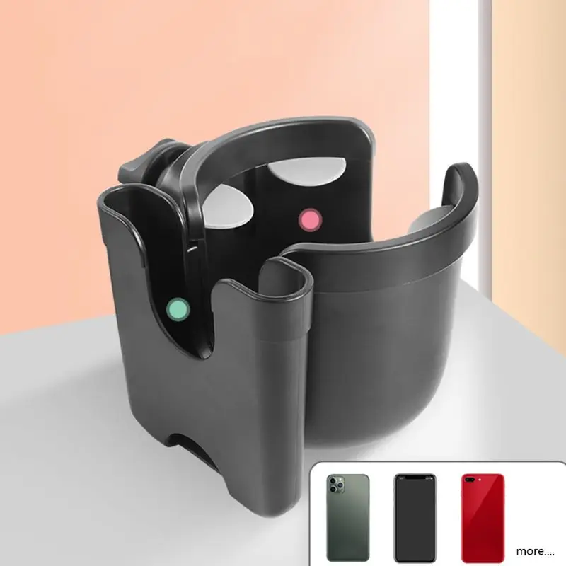 Держатель для чашек на колесиках 2-в-1 может одновременно держать бутылку с водой и мобильный телефон, что может удовлетворить потребности младенцев и матерей, что делает путешествие легким.