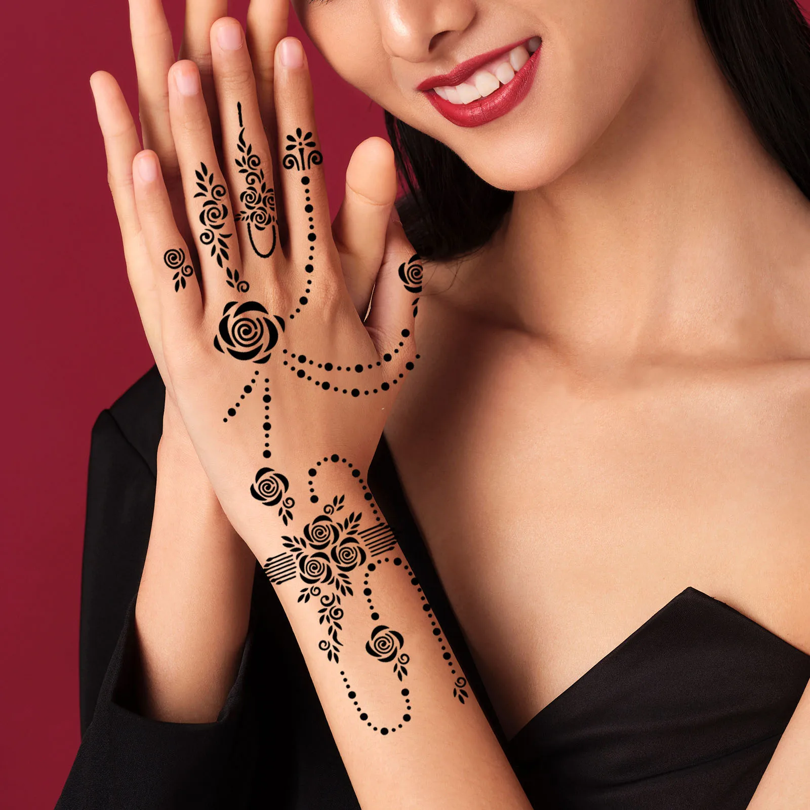 12 шт., большие трафареты для татуировки хной, цветок Аэрограф Для блесток Менди, индийские шаблоны для татуировки хной, трафарет для рисования тела