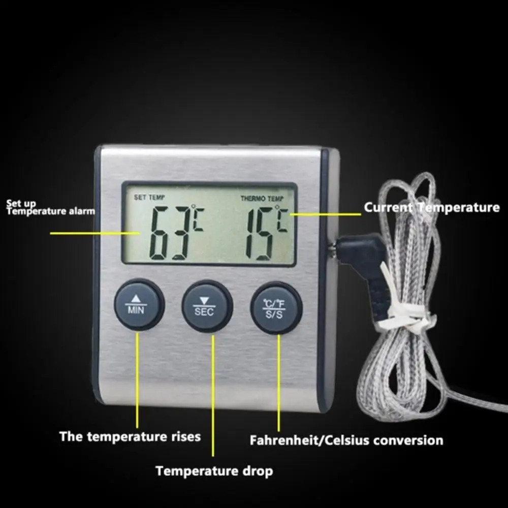 Термометр с зондом таймер 2-в-1 с большой ЖК-дисплей Экран