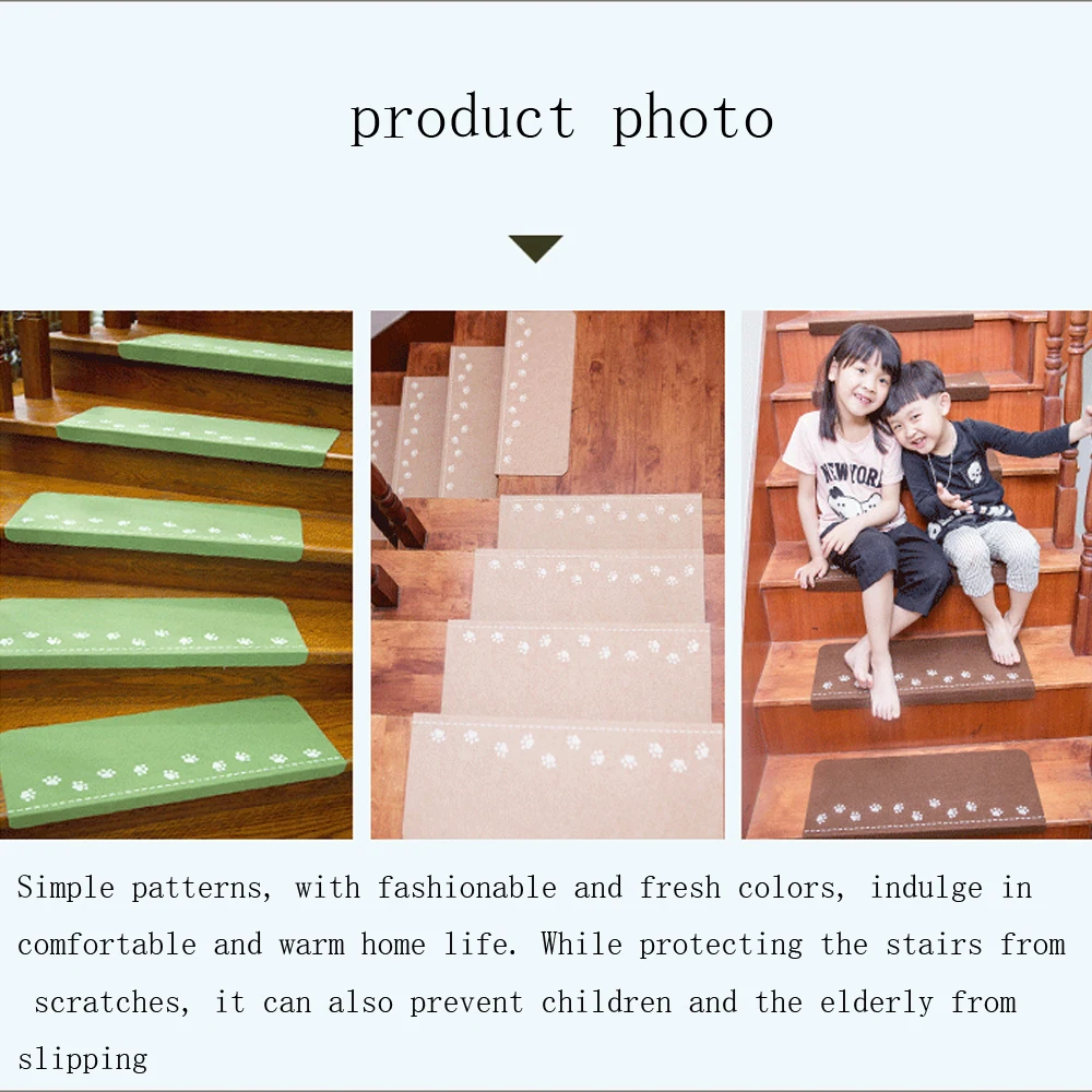Звукоизоляция, тепло и не скользит. Передняя часть изготовлена из полиэфирного волокна, а нескользящий клей из ПВХ на дне можно использовать повторно. Хотя толщина всего 3 мм, эффект звукоизоляции очень хороший. Материал: Полиэстер Спецификация: Любые спецификации могут быть настроены Материал подошвы: ПВХ латексный пеноматериал Контрмеры: Машинная стирка/ручная тряска сухую краску Применение: Лестница выделена