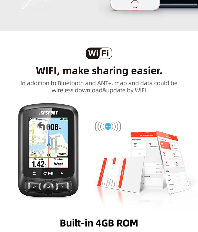 1. Муравей +: Поддержка муравья + пульсометр, датчик скорости, датчик Каденции, Каденция и скорость комбинированного датчика, измеритель мощности 2. Элементы дисплея могут быть настроены 3. Поддержка встроенной карты и карты навигации 4. Можно подключить к мобильному приложению 5. IGPSPORT совместим с STRAVE 6. Поддержка 9 языков: английский, испанский, французский, португальский, итальянский, немецкий, китайский, японский, корейский 7. Погода может быть отображена 8. Может отслеживать маршрут в режиме реального времени 9. Добавлена функция Wi-Fi 10. Он может быть интеллектуально подключен к мобильным телефонам, чтобы предотвратить пропуск важных вызовов и сообщений 11. Can DI2 электронная переменная скорость