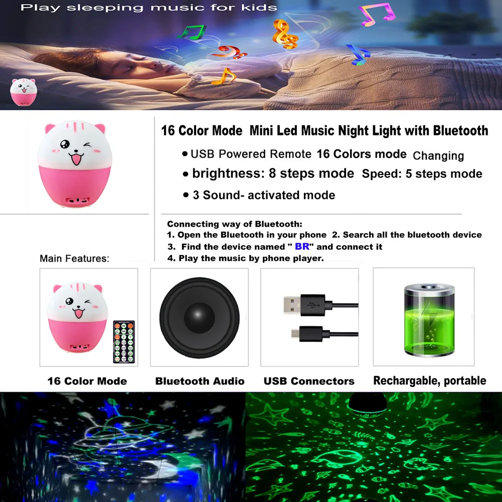 16 цветов USB СВЕТОДИОДНЫЙ светильник-проектор со звездой Bluetooth со звуком и пультом дистанционного управления, ночник для спальни, сценический Декор