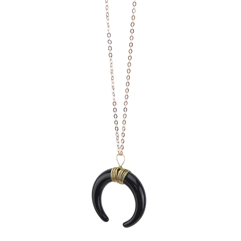 Простой дизайн Белый слоновой кости костяной рог кулон ожерелье для женщин черный полумесяц Луна Чокеры ожерелья Модные ювелирные изделия
