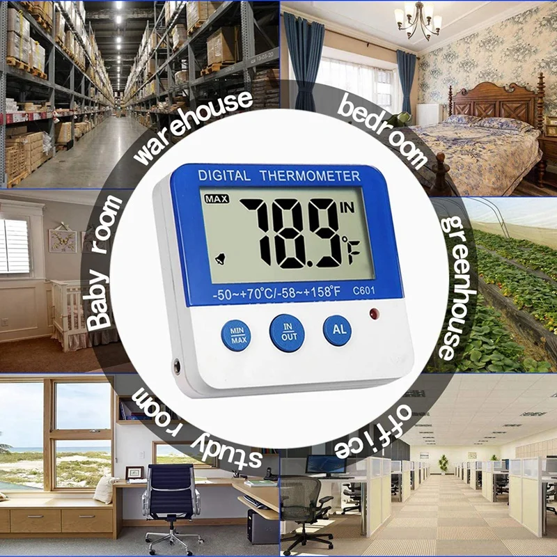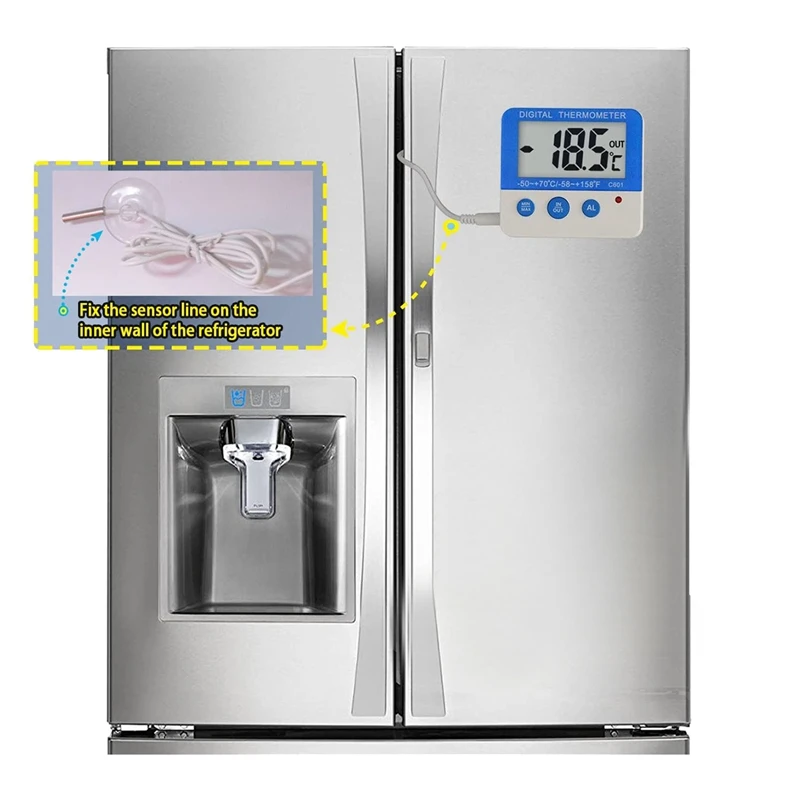 Легко читается: Большой ЖК-дисплей с цифровыми большими цифрами, преобразование внутренней и внешней температуры. Внешняя температура-это температура от датчика. Кабель датчика может использоваться для обнаружения температуры холодильника, морозильной камеры, охладителя вина, аквариума, холодильника.