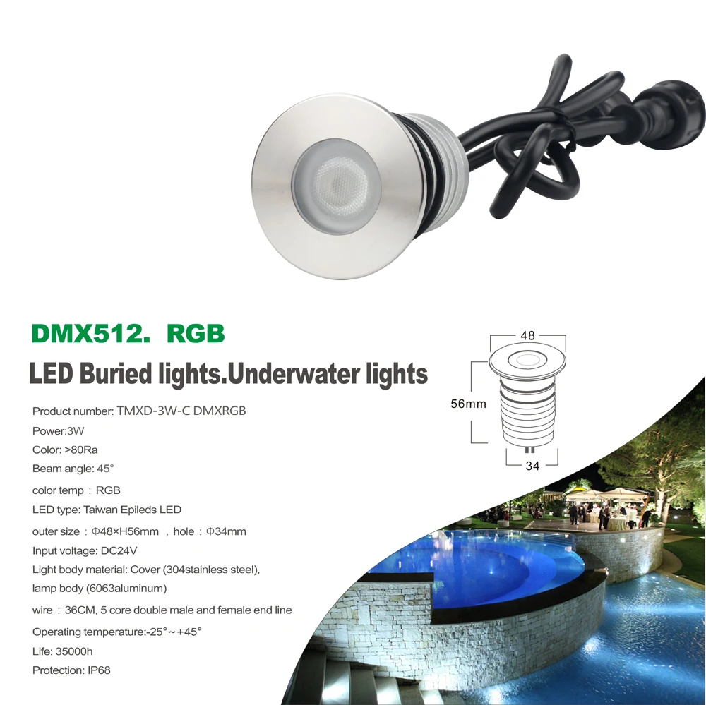 10 x DC12-24V IP68 3W Светодиодный прожектор (DMX512 RGB)(Примечание: Мы можем поставить дополнительную черную встроенную часть, удлинитель и Светодиодный источник питания для этой лампы, пожалуйста, свяжитесь с нами заранее, если вам это нужно, спасибо.)