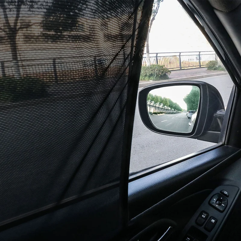 Универсальные солнцезащитные Оттенки для переднего окна автомобиля --- подходит для большинства внедорожников и боковых передних сидений автомобилей. Изготовлено из эластичной сетки, которая полностью покрывает передние сиденья Экстра широкими окнами, быстрая и простая установка, высокая эластичная лента подходит для большинства окон и не скрывает вид зеркала, он может защитить вас от внешних помех автомобиля, таких как солнечные блики и тепло, безопасное вождение, не блокируя ваше зрение.