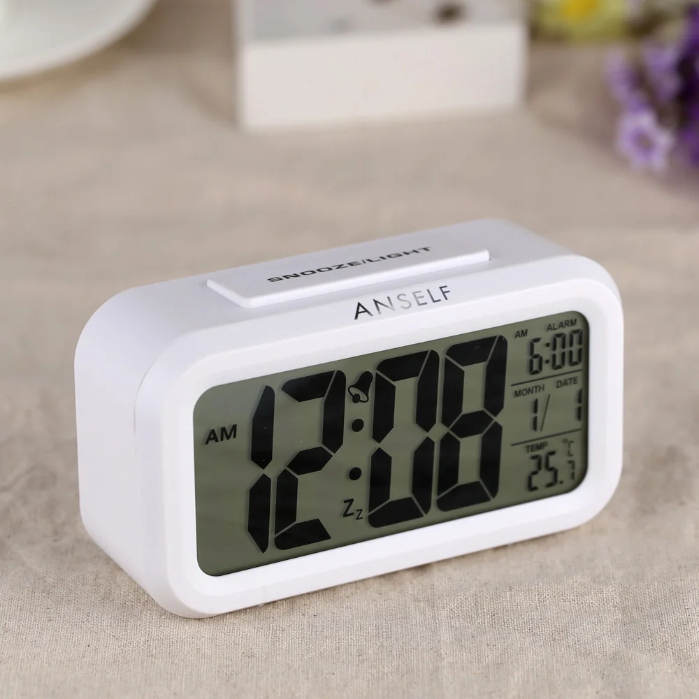 Большой ЖК-дисплей отображает время (12/24), календарь (мм/ДД), температуру (℃), состояние будильника (вкл/выкл).