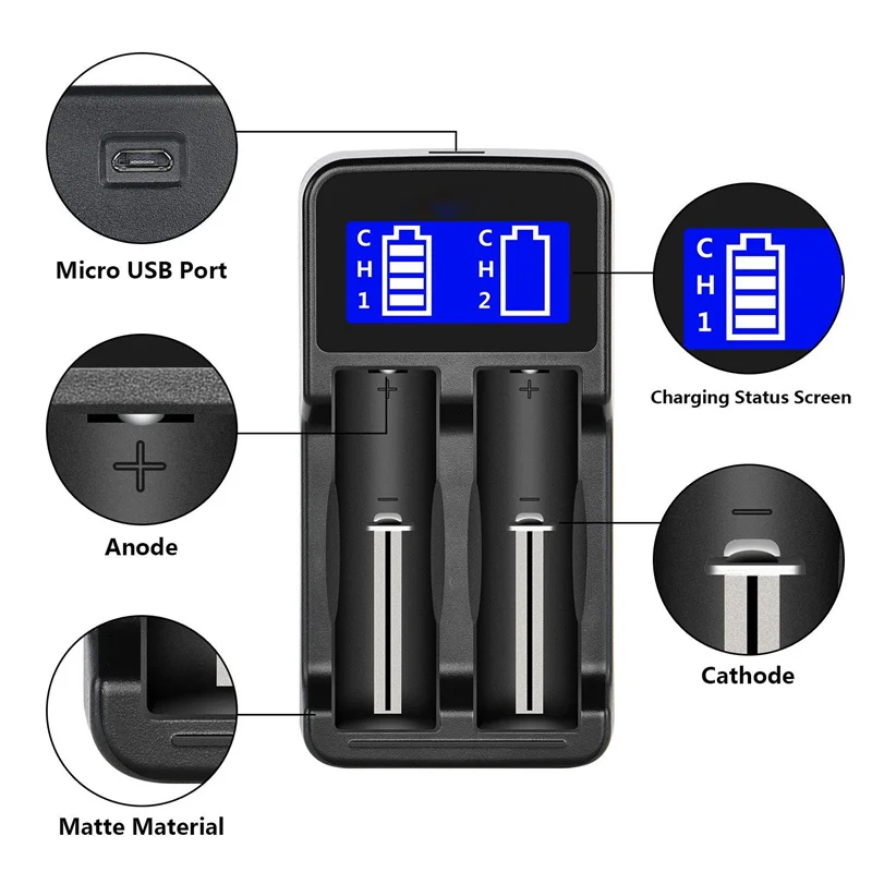 Совместим с литий-ионными батареями 18650 18490 18350 17670 17500 (RCR123), 16340 Ni-MH/Ni-Cd A AA AAA батареи и 3,7 V литиевая батарея и так далее;