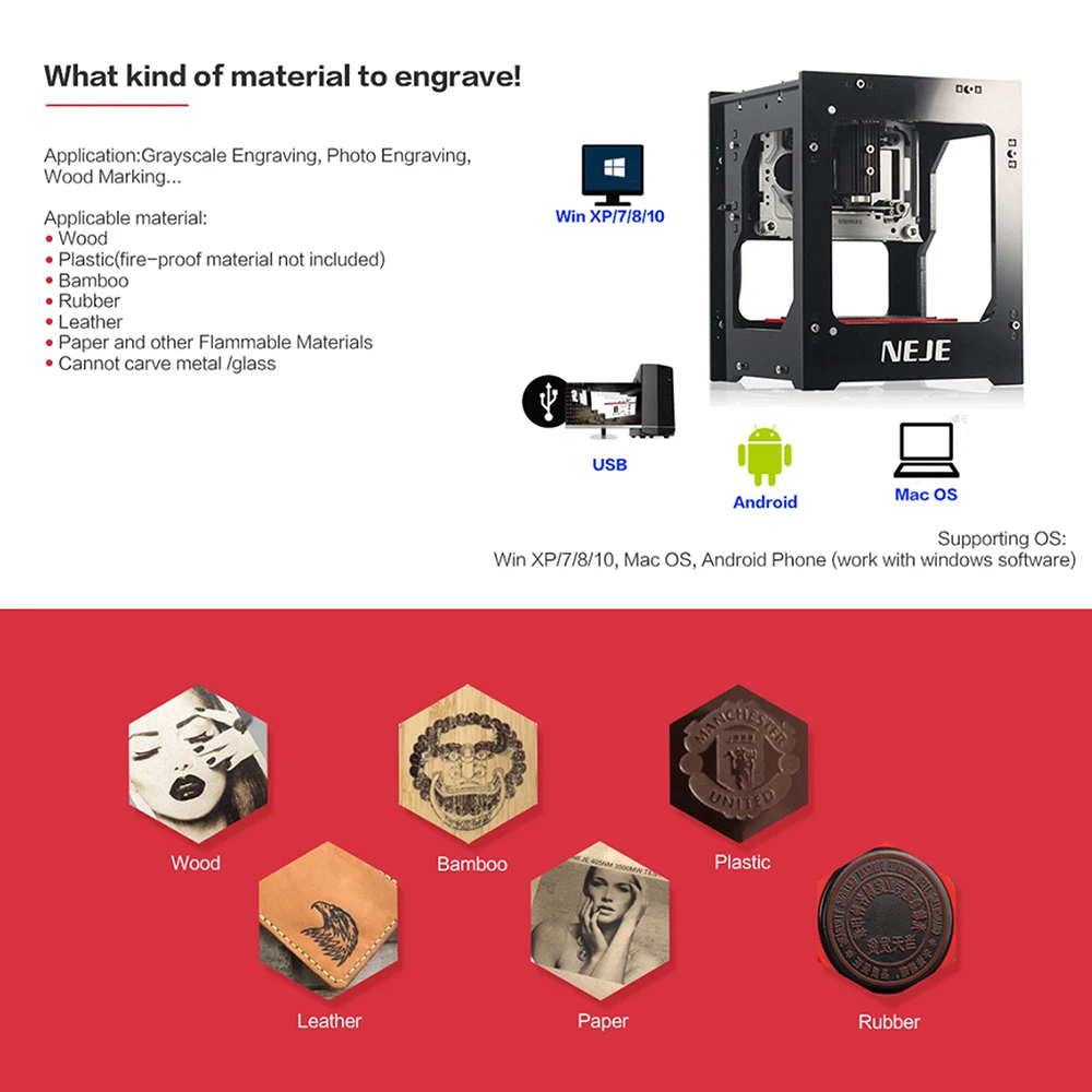 Эта лазерная гравировальная машина имеет функцию резьбы по принту и более практична, чем обычная гравировальная машина. Этот мини-лазерный гравировальный станок с высокой точностью и высокой стабильностью отлично подходит для самостоятельной гравировки. Он поддерживает автономную работу, удобен, чем обычный гравировальный станок.