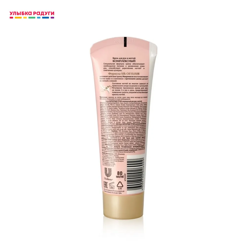 Состав : Aqua, Caprylic/Capric Triglyceride, Glycerin, PEG-12, Talc, Glyceryl Stearate, Helianthus Annuus (Sunflower) Seed Oil, Cetearyl Alcohol, Cyclopentasiloxane, Sine Adipe Lac, Biotin, Tocopheryl Acetate, Urea, Potassium Cetyl Phosphate, Acrylates/C10-30 Alkyl Acrylate Crosspolymer, Allantoin, Caprylyl Glycol, Citric Acid, Diethylhexyl Syringylidenemalonate, Dimethicone, Disodium Phosphate, DMDM Hydantoin, 1,2-Hexanediol, Hydrolyzed Silk, Mangifera Indica (Mango) Juice, Mel, Methylparaben, Olea Europaea (Olive) Fruit Oil, Oryza Sativa (Rice) Germ Oil, Palmitic Acid, Parfum, PEG-40 Hydrogenated Castor Oil, Persea Gratissima (Avocado) Oil, Pistacia Vera Seed Oil, Potassium Sorbate, Prunus Armeniaca (Apricot) Kernel Oil, Prunus Persica (Peach) Kernel Oil, Retinyl Palmitate, Stearic Acid, Triethanolamine, Trideceth-9, Alpha-Isomethyl Ionone, Butylphenyl Methylpropional, Citronellol, Coumarin, Hexyl Cinnamal, Hydroxycitronellal, Geraniol, Linalool.