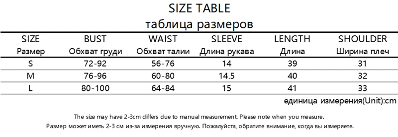 Возможна разница в 1-3 см в соответствии с измерениями вручную. Пожалуйста, внимательно проверьте таблицу размеров перед покупкой товара. Спасибо за понимание.
