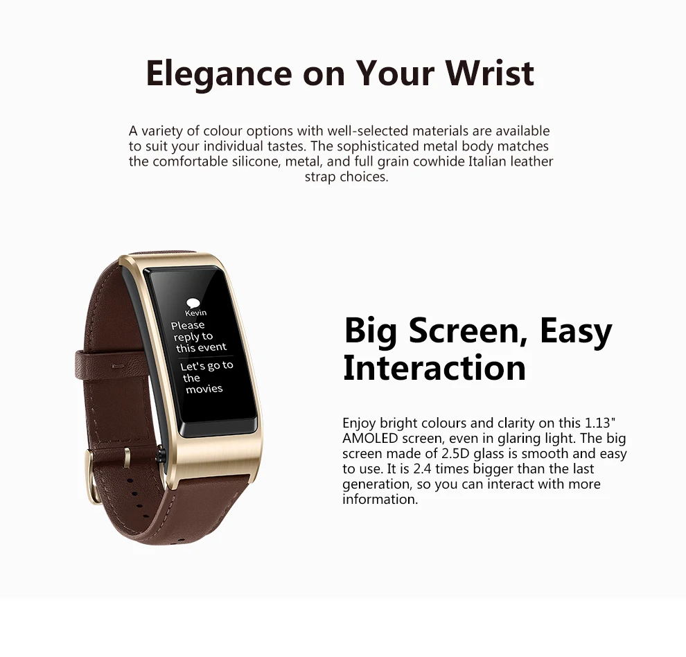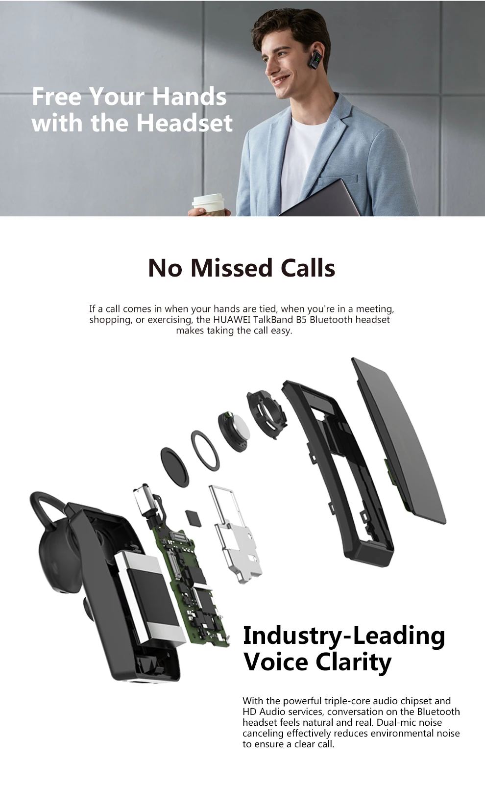 Никаких пропущенных звонков Если вызов приходит, когда ваши руки завязаны, когда вы находитесь в шопинге на встрече, или если вы не согласны, bluetooth-гарнитура HUAWEI TalkBand B5 облегчает вызов.