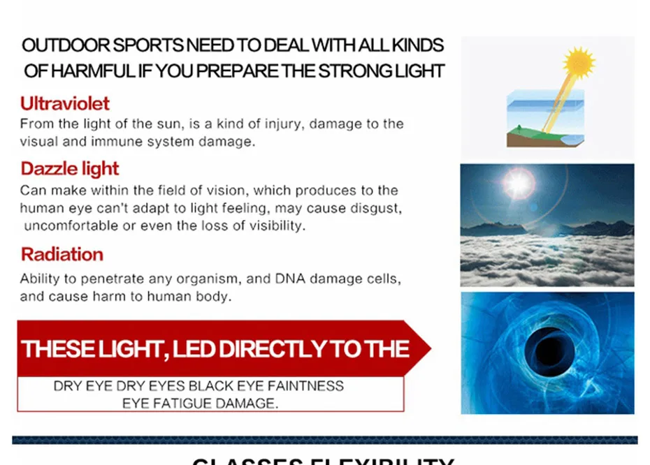 Информация: Цвет: черный, белый, красный, синий Пол: мужчины, женщины Стиль: велосипедные очки, очки для рыбалки Подходит для: велоспорта, рыбалки, катания на лыжах, бега, занятий спортом на открытом воздухе Линзы: 3 линзы, цветные линзы с HD покрытием, серые поляризованные линзы, желтое яркое усиление Вес: 200 г Особенности: 1. 3 Упаковка линз, дизайн для всех случаев как днем, так и ночью. 2. 100% УФ-защита. 3. Ультра-светильник, не ощущая нагрузки для длительного ношения. 4. Прочная и эргономичная конструкция.