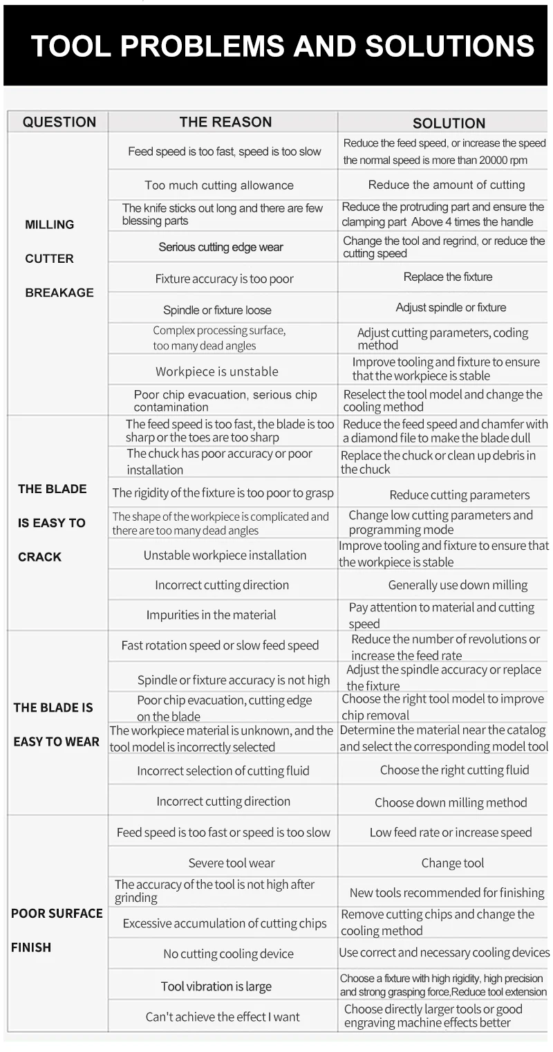 Для достижения требуемой цели обязательно используйте инструменты с короткими краями как можно больше. Слишком длинный режущий край или слишком длинный корпус инструмента вызовут вибрацию и отклонение во время обработки, что приведет к повреждению инструмента и повлияет на качество обработки. Мы рекомендуем использовать инструмент с большим диаметром хвостовика