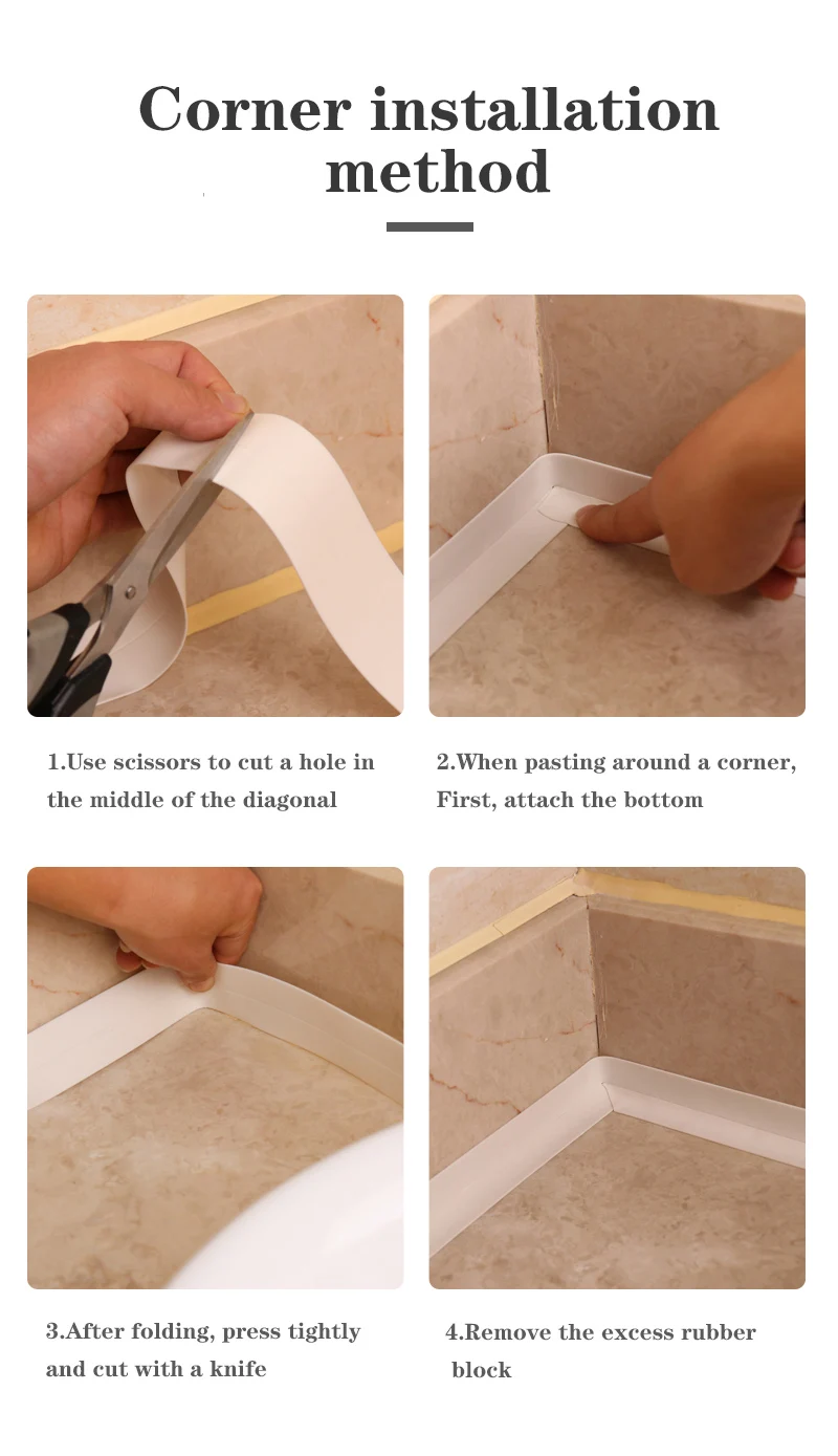 Особенности: 100% новый и высокое качество Подходит для ванной комнаты Долговечность, устойчивость к плесени Для герметизации вокруг ванн, панелей и душевых лотков Быстро, чисто, легко установить Просто раскатайте, отчистите заднюю бумагу и нажмите на место Характеристики: Материал: ПВХ Цвет: белый, зеленый, розовый, бежевый Размер: 3,2 м * 38 мм, 3,2 м * 22 мм Посылка включает в себя: 1 * уплотнительная лента