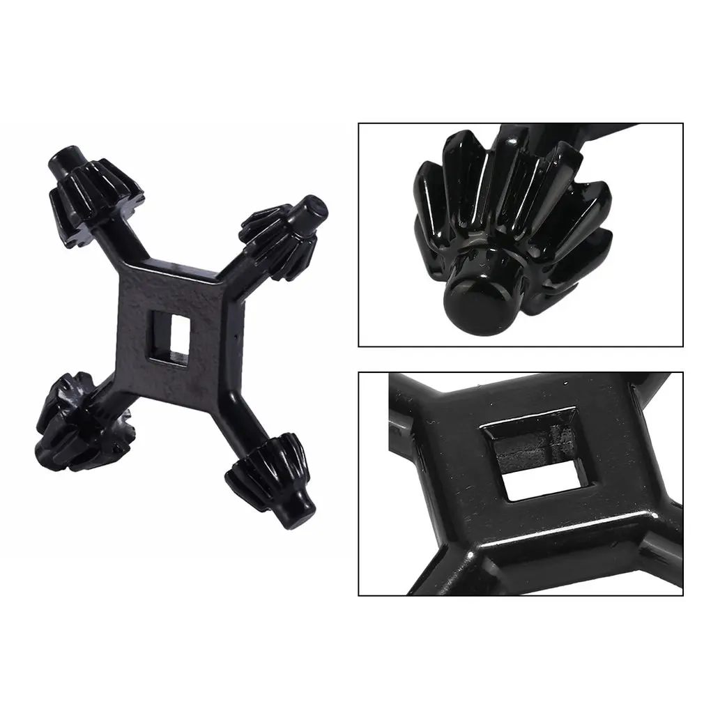 Особенности: 1. Изготовлен из высококачественного материала для более длительного срока службы. 2. Профессионализм: незаменимый инструмент в жизни, хороший помощник в жизни. 3. Четкие характеристики и широкий диапазон применения. Описание: 4-в-1 четырехсторонний ключ-ключ, перекрестный ключ, ручной сверлильный ключ-патрон. Характеристики: Материал: цинковый сплав Цвет: черный Размер изделия: 102*98 мм Посылка включает в себя: 1 * Многофункциональная ручная дрель