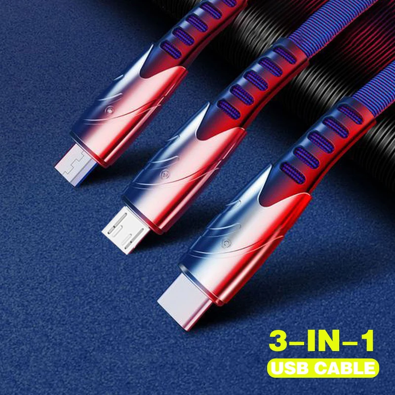 3 в 1 USB кабель для iPhone XS Max XR X 8 7 зарядное устройство Micro USB кабель 2 в 1 мобильный телефон USB Type-c кабель