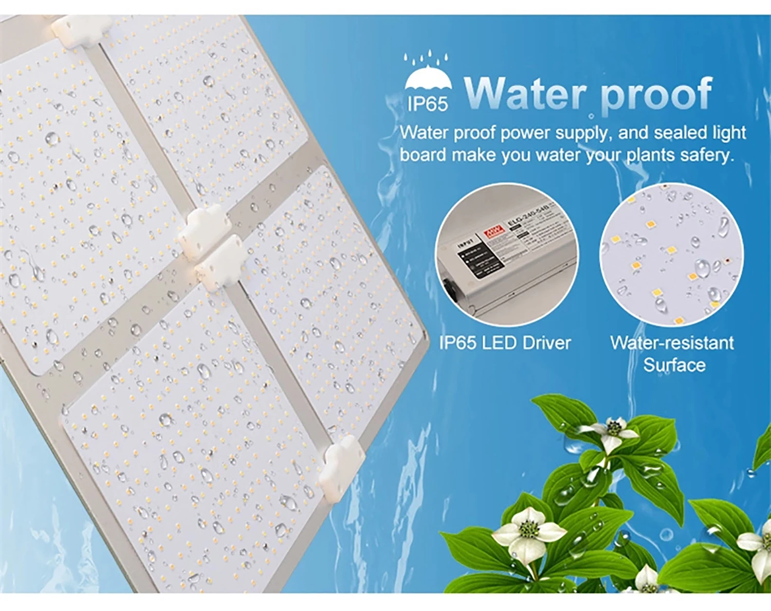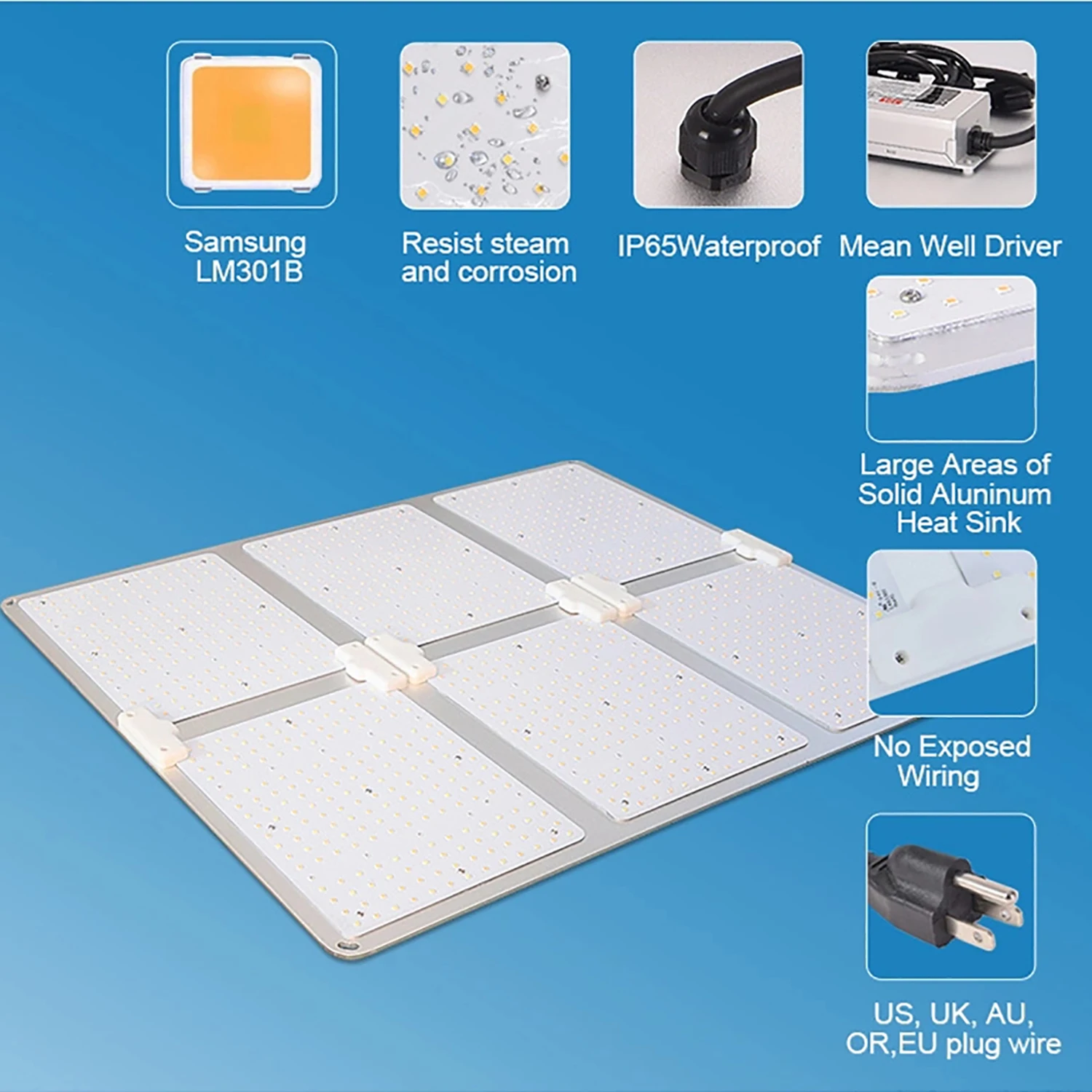 1. Светодиодный источник Samsung LM 301B, освещение наиболее подходит для роста посадки в помещении или теплице. 2. До 2,8 μmol/J Высокая эффективность, энергии • Большой энергосберегающий ЖК-дисплей с высоким выходом. 3. Изготовленный на заказ светильник с 660нм и 750нм для полного цикла культивирования. 4. Первоклассный драйвер-драйвер Meanwell сертифицирован управлением, обеспечивая стабильную и длительную защиту света. 5. Линзы предназначены для большинства видов освещения, которые можно собрать и использовать, 100% водонепроницаемый. 6. Хороший радиатор, многоуровневый ребристый алюминиевый, во время строгих температурных испытаний, не вреден, не шумит, более длительный срок службы. 7. Внутренняя конструкция крючка, быстрая установка и plug and play,100% безопасность для подвешивания. 8. Водонепроницаемый разъем IP68 и водонепроницаемое покрытие IP65 на длительный срок службы, 3 года гарантии.