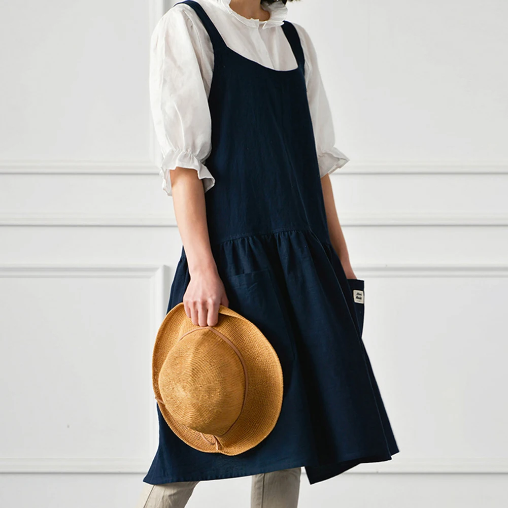 Дизайн сложенного фартука делает фартук элегантным и мягким. Дизайн с перекрестной спинкой предотвращает соскальзывание фартука с плеч. 2 больших передних кармана придают больше практичности фартуку.