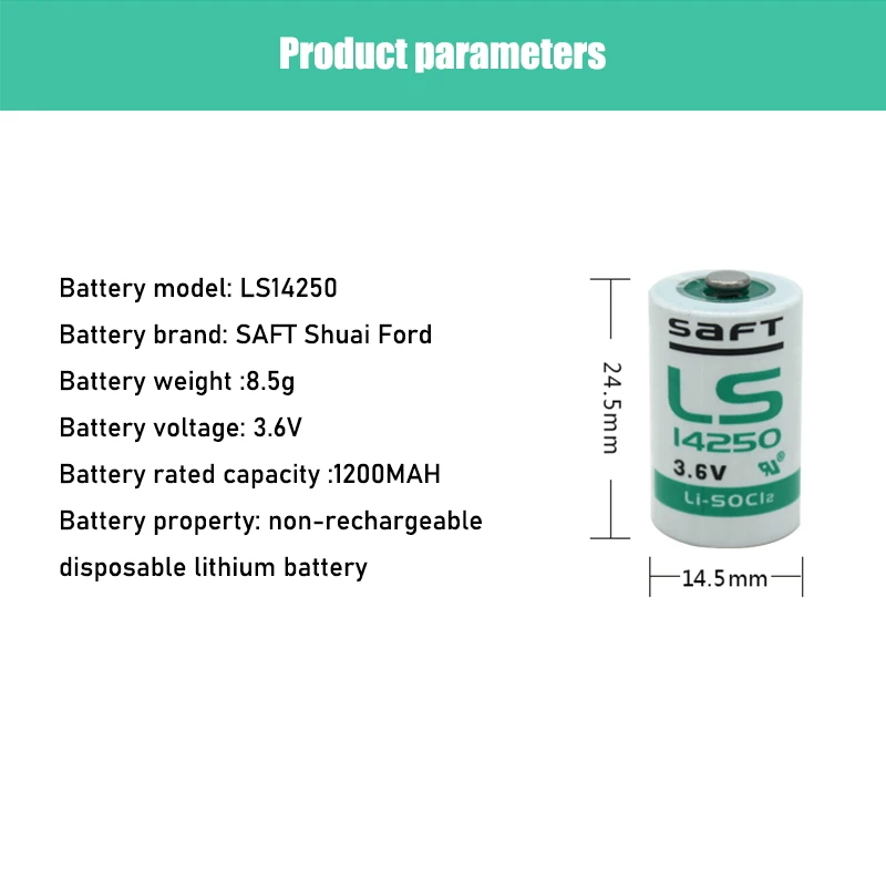 1/2AA Размер Литий тионилхлоридом цилиндрический LS14250 14250 батарея, 3,6 V высокой энергии, высокая надежность структура слежения за батареи.