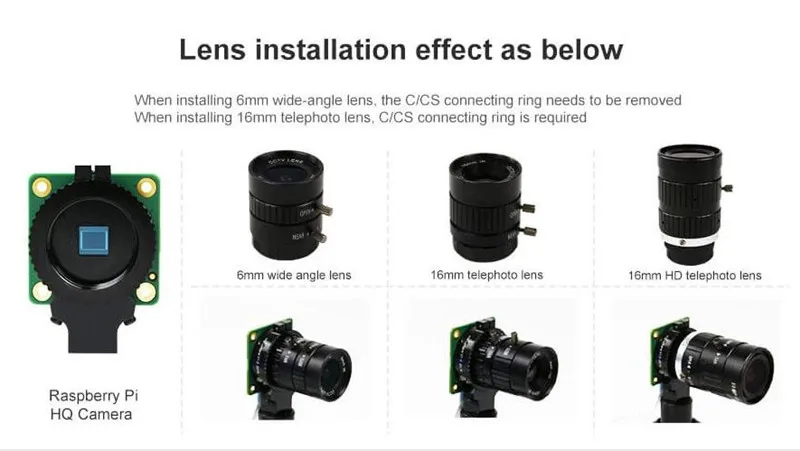 Это новый высококачественный модуль камеры, запущенный Raspberry Pi. Он основан на IMX477R и должен использоваться с объективом типа C/CS. Например, FV0612 6 мм широкоугольный объектив, FM1614 16 мм телеобъектив, FV1614 16 мм HD телеобъектив и т. д. модуль имеет встроенный инфракрасный фильтр и фокусное расстояние регулируется. По сравнению с существующей камерой RPi V2, она имеет лучшую производительность, низкий светильник, более высокое разрешение. Подходит для приложений, которые требуют более высокой визуальной точности.