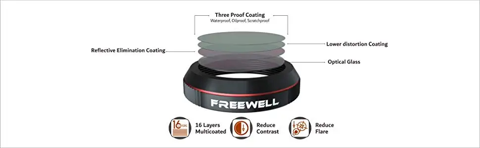 • Острое Оптическое стекло бритвы используется для обеспечения оптимального качества воздушных изображений • Четырехъядерный процессор 16 слоев с алюминиевой рамкой и многослойным покрытием оптические стекляннo линзa фильтры обеспечивает кристальной чистотой в захваченные кадры • Супер легкое кольцо с ЧПУ, используемое в строительстве, предотвращает неблагоприятное воздействие на карданный шарнир • Набор фильтров Freewell gear включает в себя фильтры ND4, ND8, ND16, CPL, ND8/PL, ND16/PL, ND32/PL и ND64/PL • Простая винтовая система для более легкого крепления/ОТСОЕДИНЕНИЯ, предназначенная для использования с дроном DJI Mavic 2 zoom