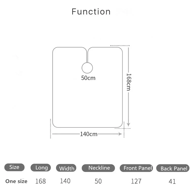 Размер:Прибл. 140*168 см/55*66 дюймов, вместительный для всех, вырез 42-46 см длиной и 50-60 см после растягивания.