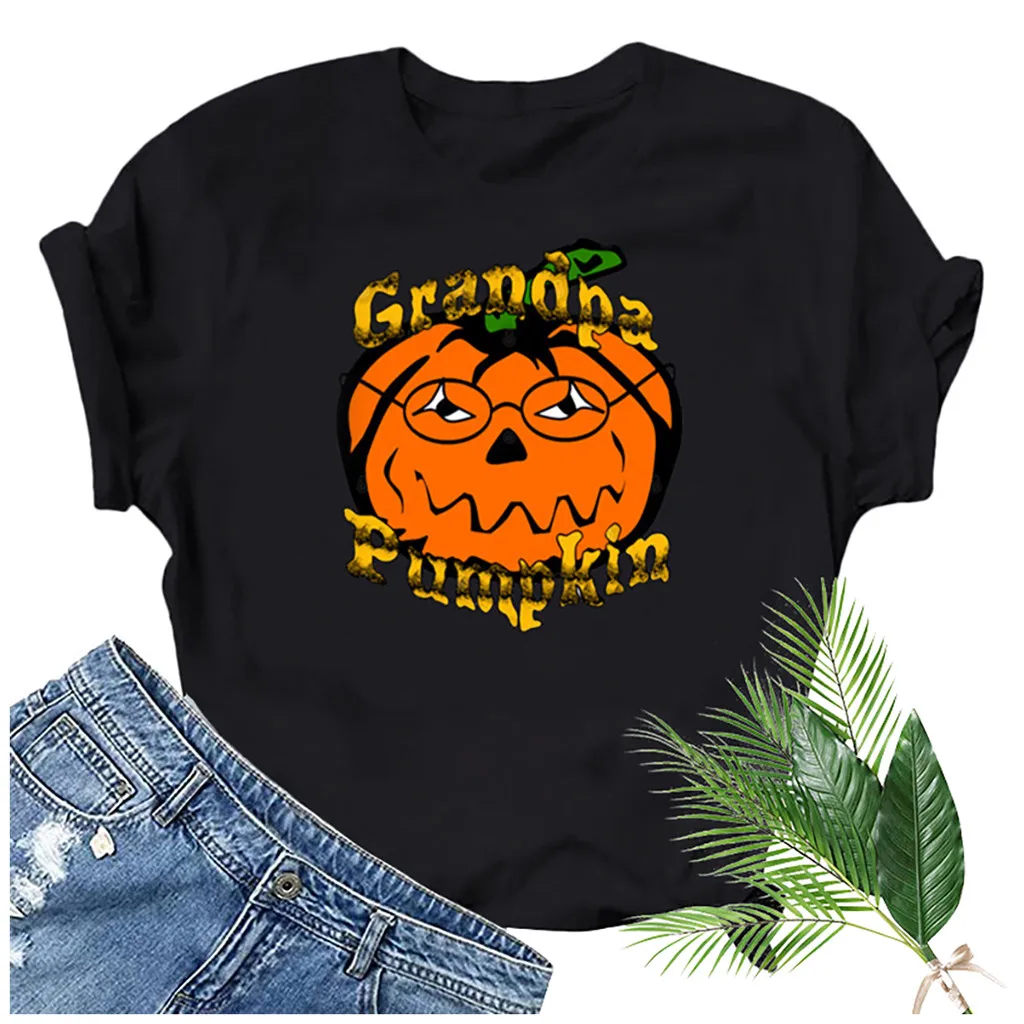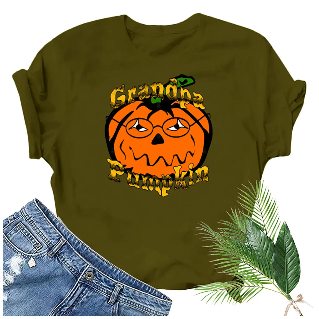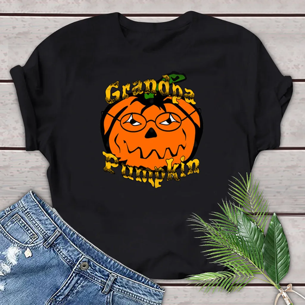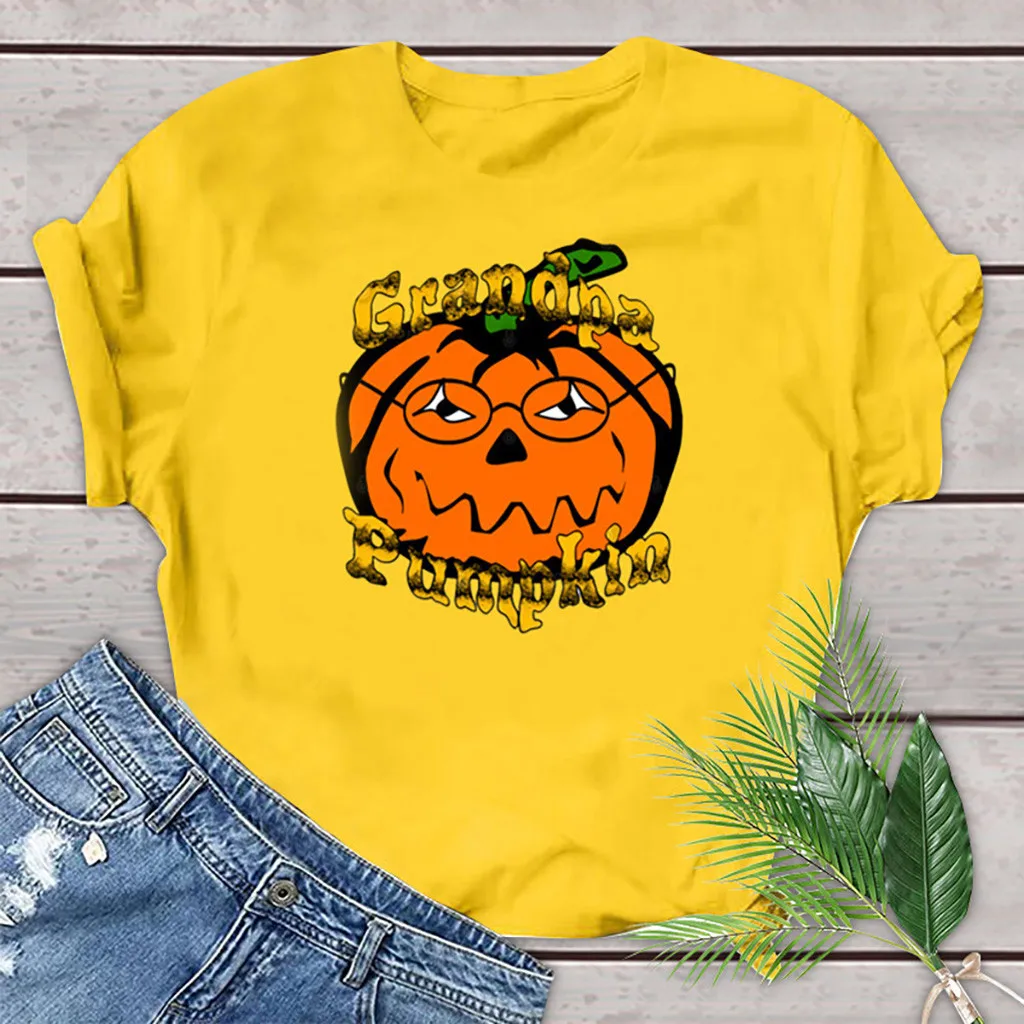 Женская Повседневная футболка на Хэллоуин с принтом тыквы, топ с круглым вырезом, блузка