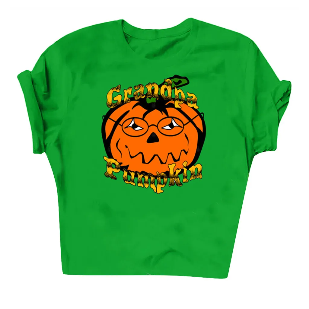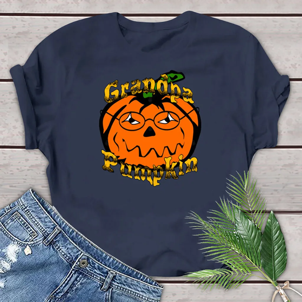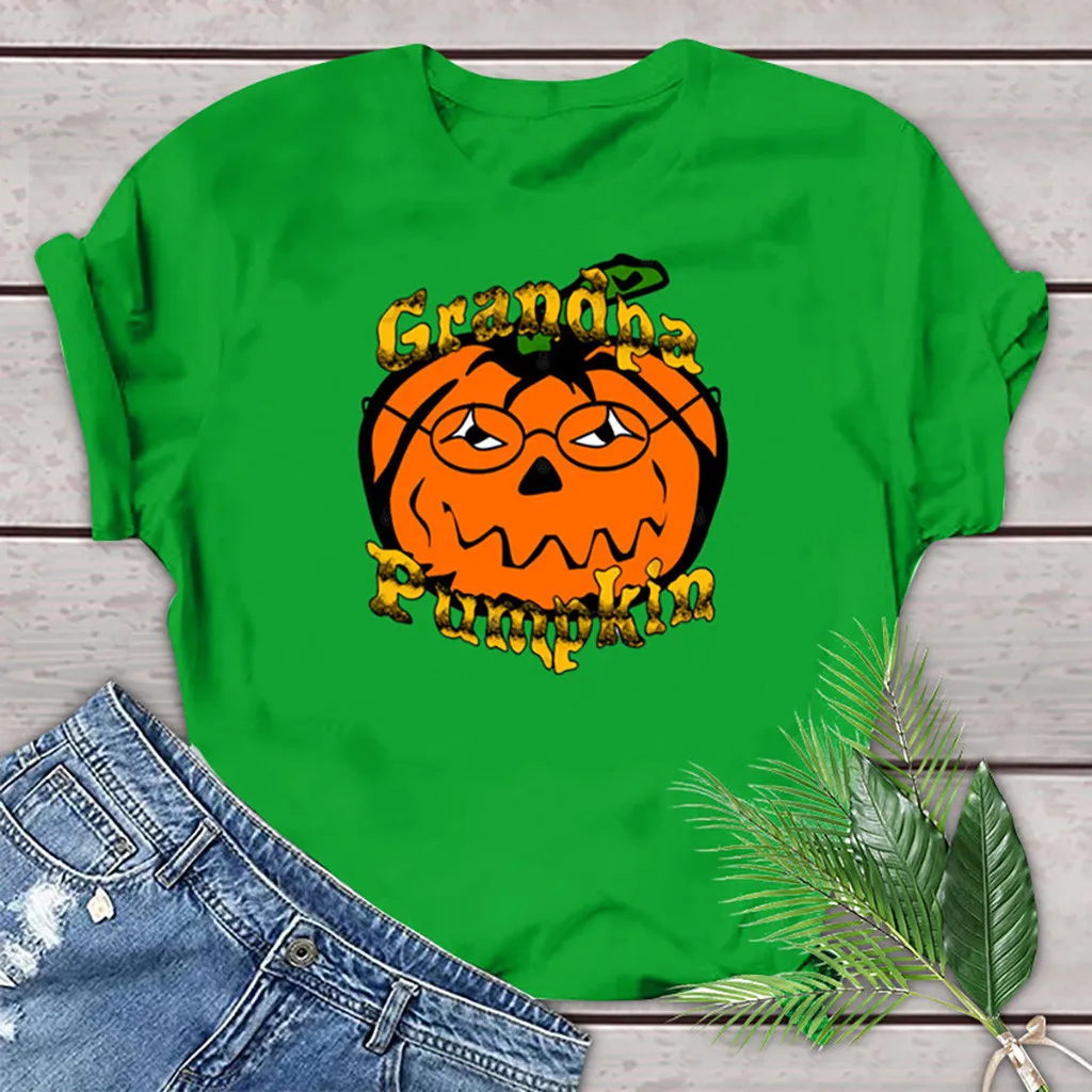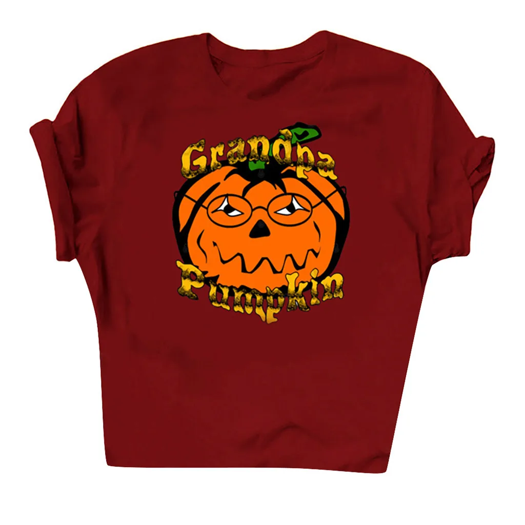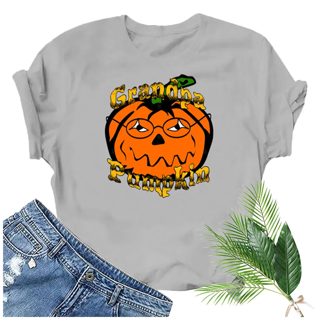 Женская Повседневная футболка на Хэллоуин с принтом тыквы, топ с круглым вырезом, блузка