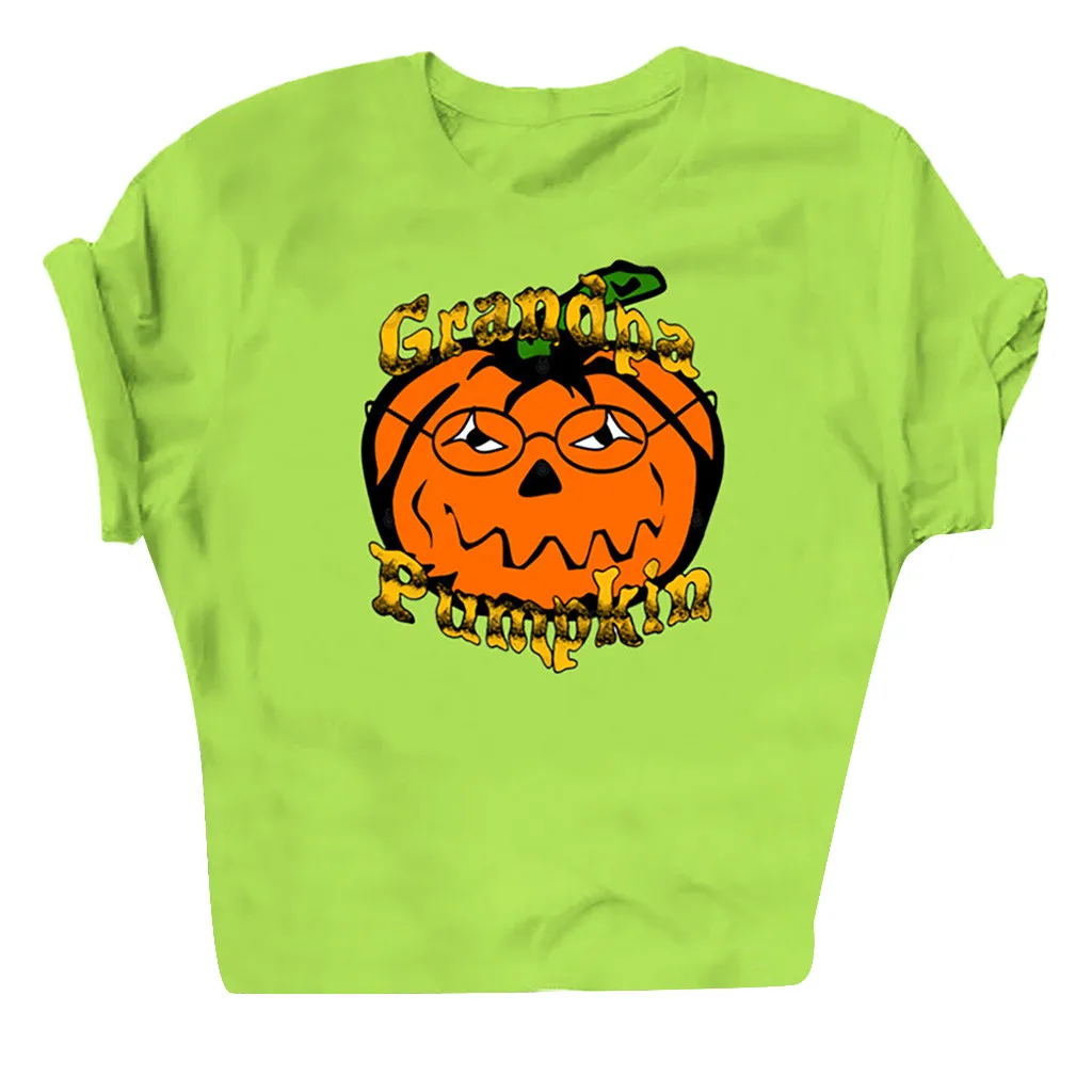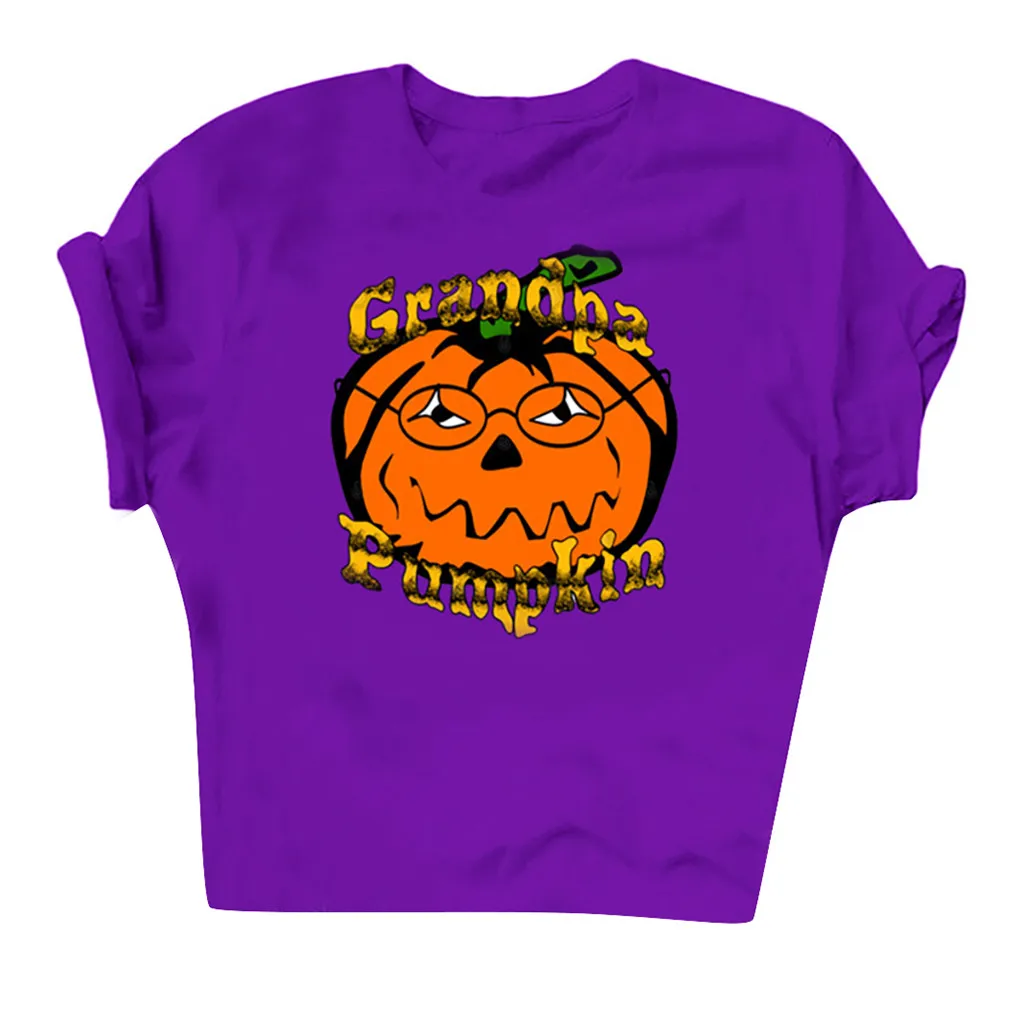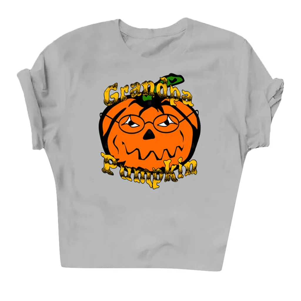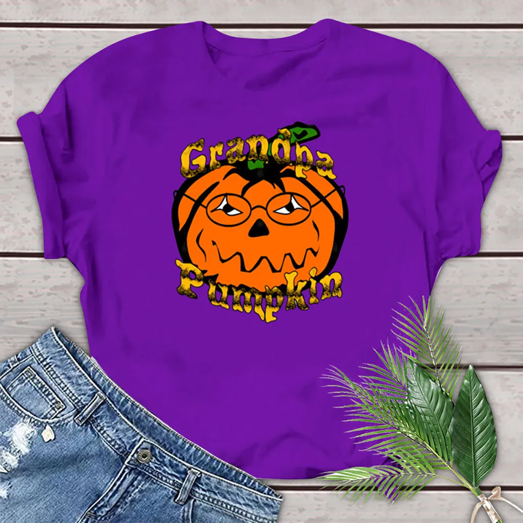 Женская Повседневная футболка на Хэллоуин с принтом тыквы, топ с круглым вырезом, блузка