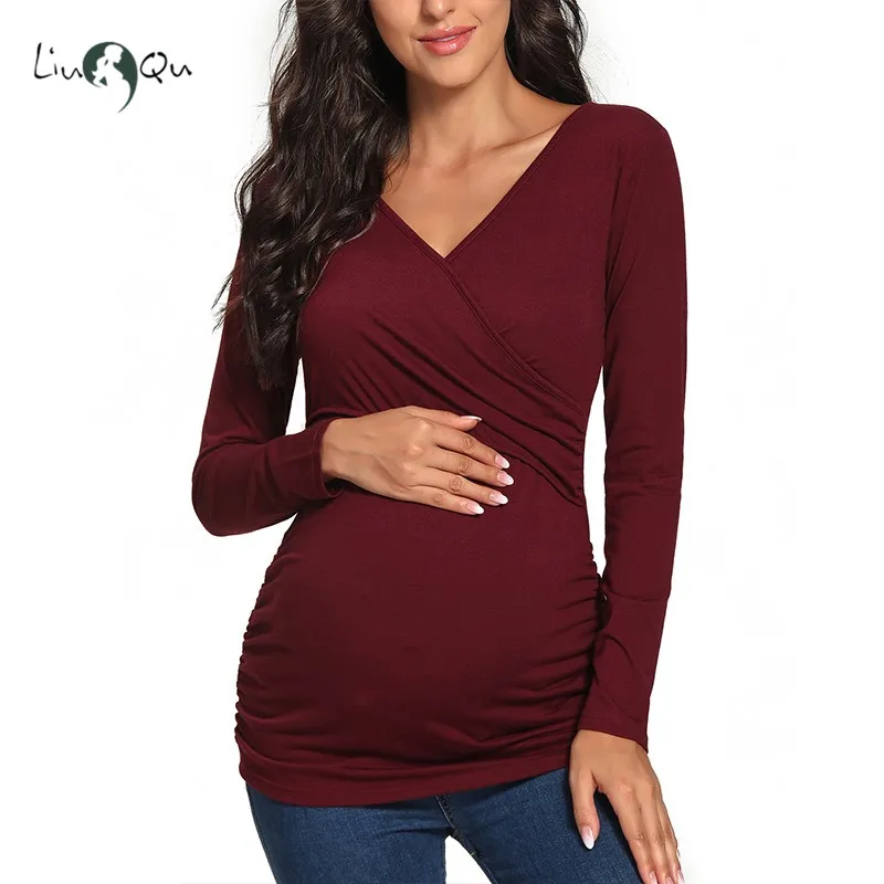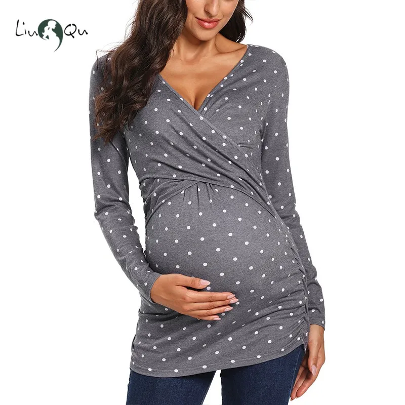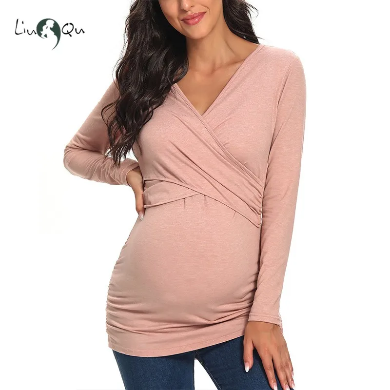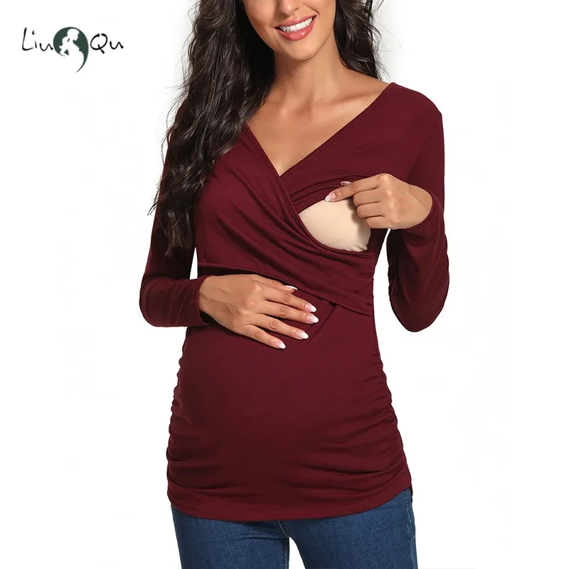 Короткий рукав с v-образным вырезом, двухслойная ткань для легкого грудного вскармливания.