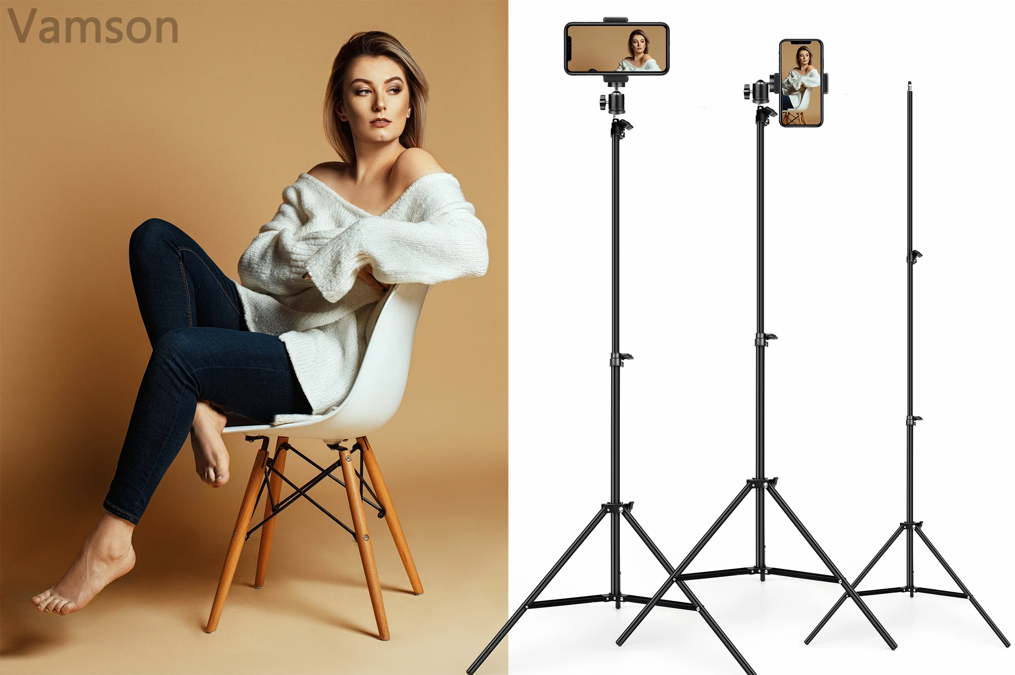 ① Vamson покрывает Вас нашим универсальным профессиональным комбо для съемки на следующий уровень. Идеально подходит для селфи, групповых фотографий, путешествий приключений, vlogging, YouTube видео, подкастов, Facebook Live, FaceTime, Instagram, live streaming. Флуоресцентный ② Не только хотите снимать фотографии/видео с отличной стабильностью, но и высвобождая ваши руки. Вращение головы на 360 °, чтобы найти лучший и красивый угол съемки, теперь вы можете надавить на больше людей или фон, чтобы сделать наиболее удовлетворяющие селфи и запечатлеть Потрясающие селфи или другие фотографии с невозможных ранее углов! Флуоресцентный ③ Чего вы ждете?