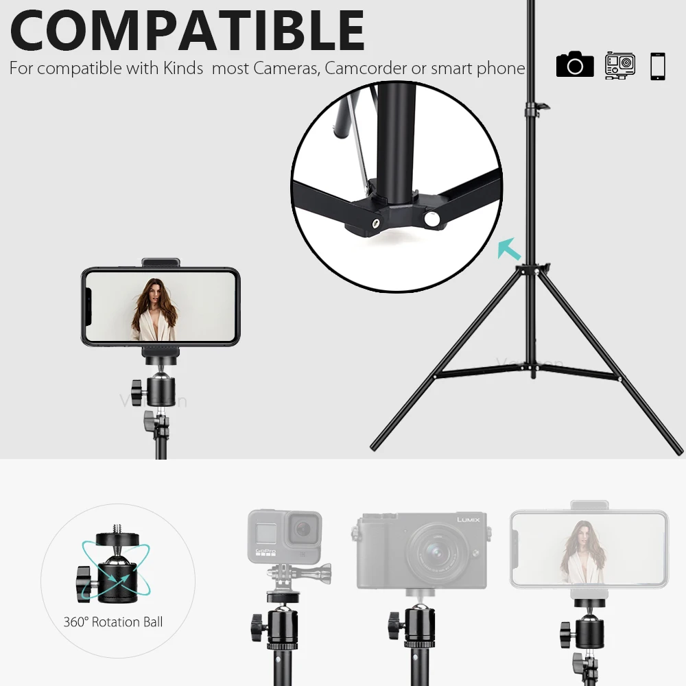 50 см/70 см/110 см/160 см/200 см Универсальный Высокий, и очень стабильный, вы можете открыть Телескопические ножки, легко изменить высоту штатива, подвижные подковы для любой географической среды