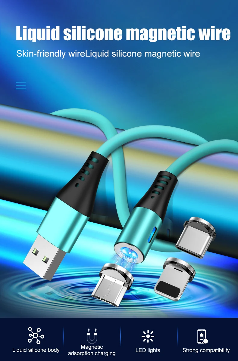 2020 Горячая продажа жидкий силиконовый Магнитный присоска кабель для передачи данных три в одном 360 Du круг слепое Аспирация Android Typec Магнитная линия для Xiaomi Huawei