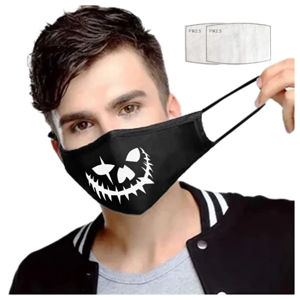 1 шт. маска + 2 шт. фильтр универсальная моющаяся маска с забавными принтами на Хеллоуин для лица