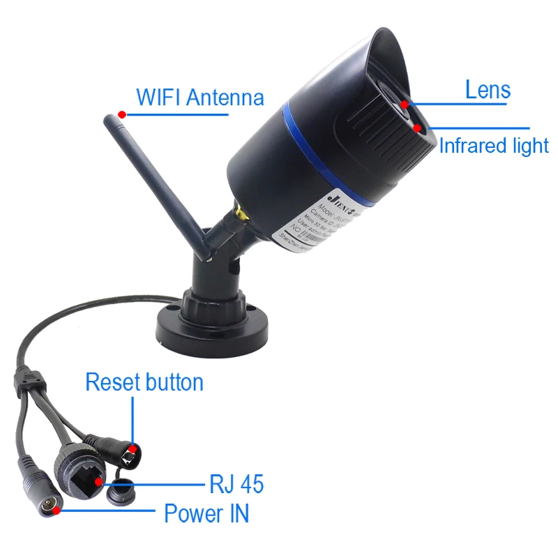 Поддержка уличной водонепроницаемости Удаленное видео в реальном времени, звук в реальном времени Камера имеет встроенный водонепроницаемый микрофон, поддерживает запись звука Поддерживает как Wi-Fi, так и проводной режим Поддержка карт Micro SD (не содержит карты Micro SD); Поддерживает ONVIF, может работать со вечерние видеорегистратором. Поддержка мобильного видеонаблюдения (iOS,android) Поддержка обнаружения движения и оповещения по электронной почте Разрешение видео: 1920*1080P Поддерживает интерфейс веб-сайта в браузере IE Поддержка мульт-плана: ПК, планшет, смартфон ИК-фильтр: Да IR светодиодный s : 24 ИК светодиодный да с ИК-расстоянием 30 метров Беспроводная связь: Wi-Fi 802.11b/G/N Водонепроницаемая камера из АБС-пластика IP66: используется в помещении и на улице; Условия эксплуатации: -45 °C ~ 60 °C, влажность 95% или менее (без конденсации)
